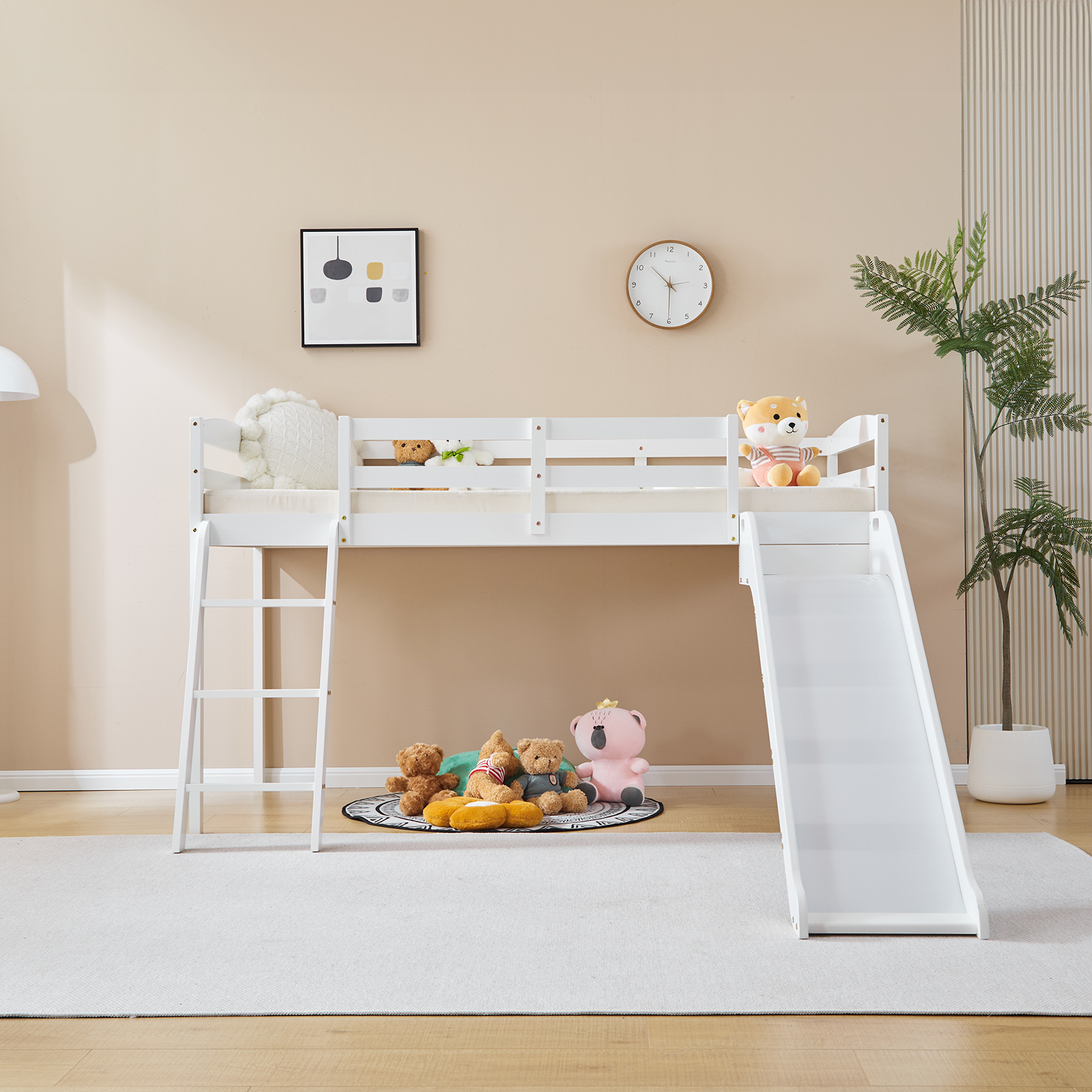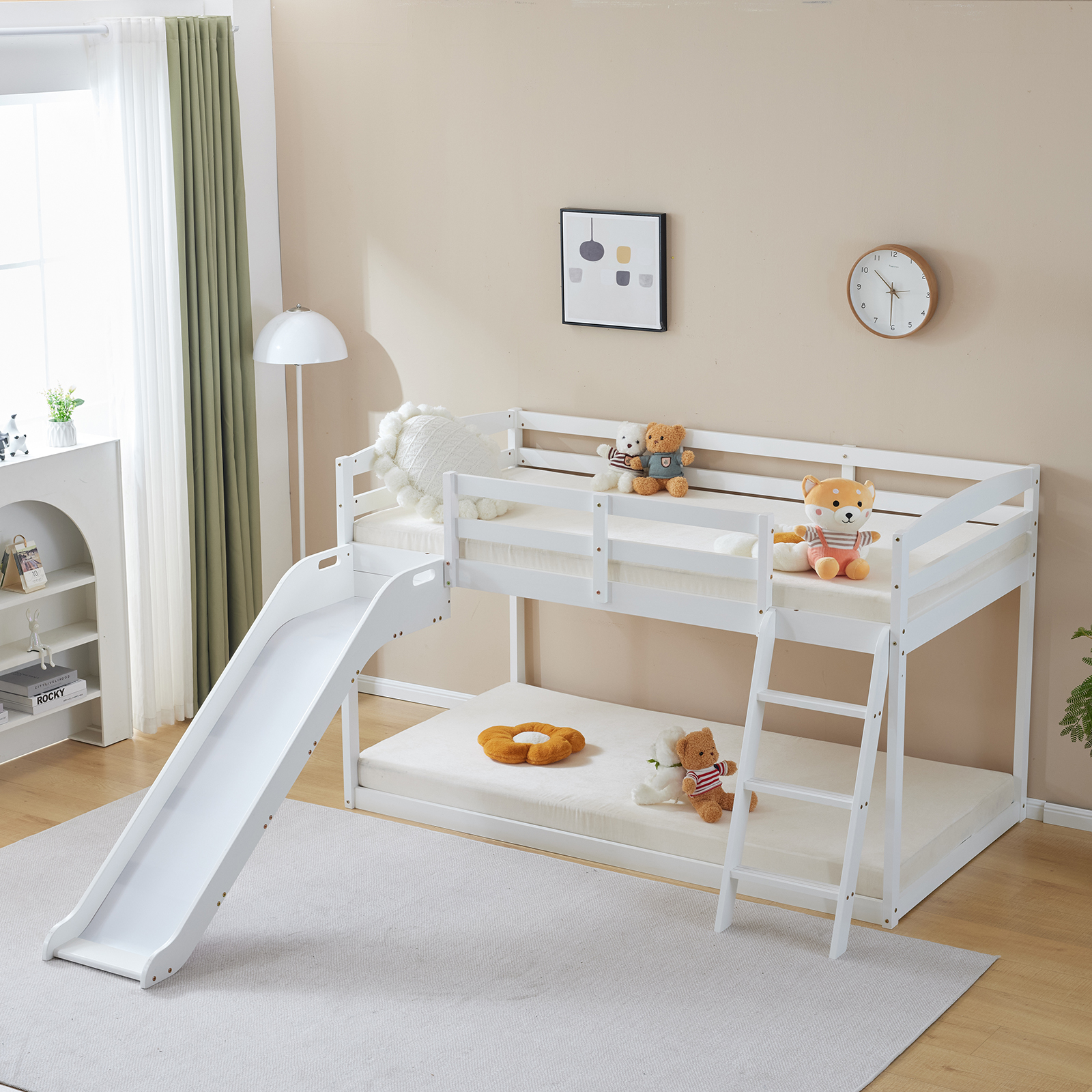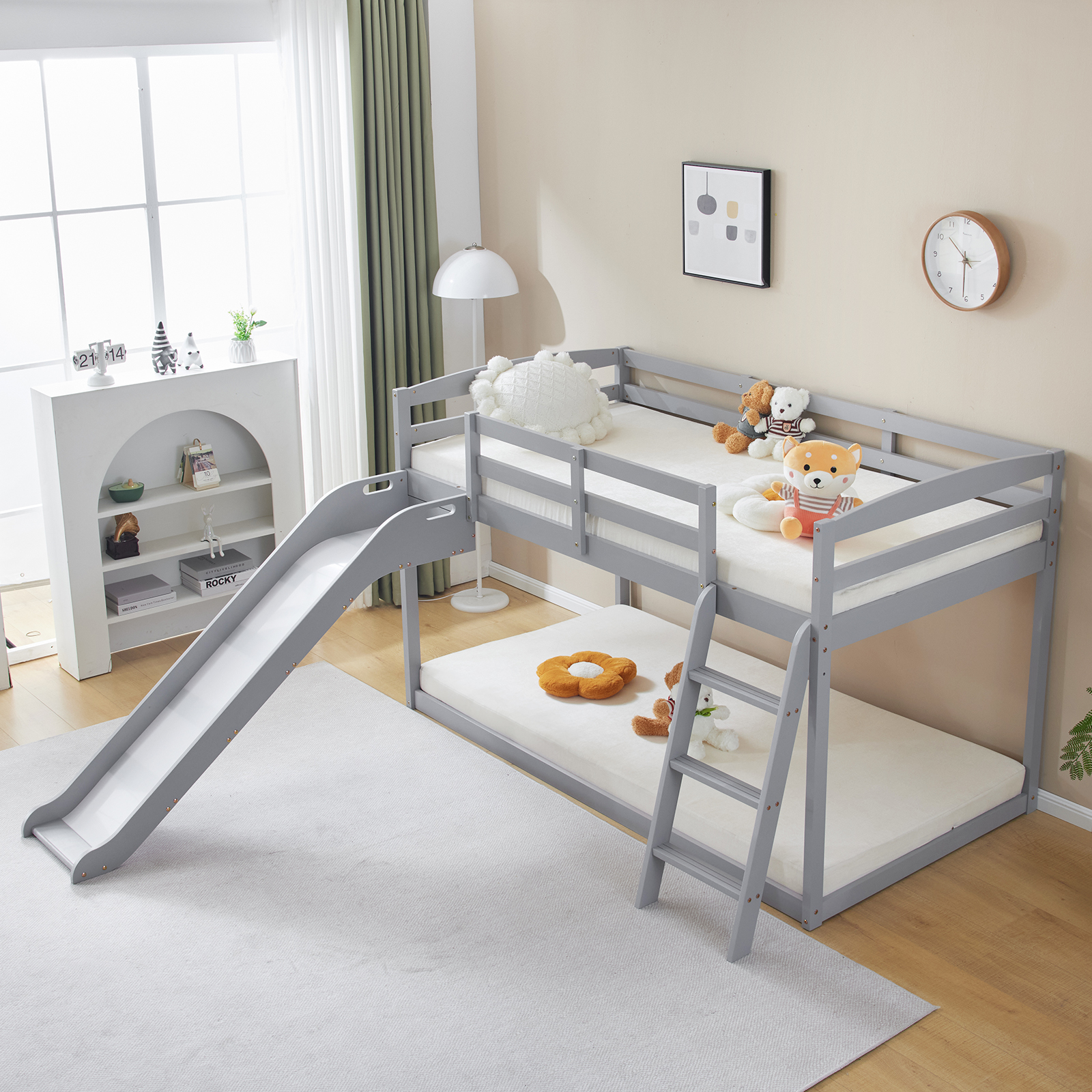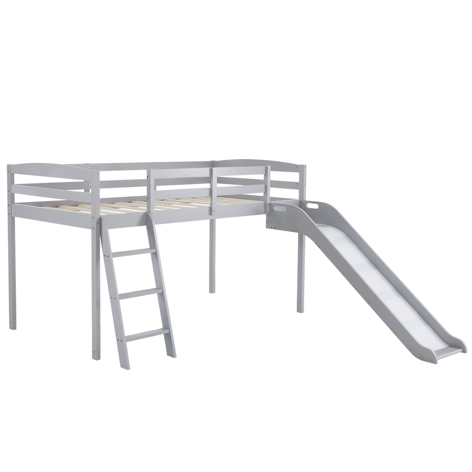listing template VISIT OUR STORE SIGH UP FOR EMAIL Solid Pine Wood Floor Bunk Beds Frame Kids Bunk Bed for Bedroom Teens Dormitory Introductions Transform your child's bedroom into a fun and functional space with our Twin Size Low Loft Bed with Slide and Ladder. Designed for both play and rest, this classic solid wood bed features an exciting slide and secure ladder, making bedtime an adventure. With a generous 660 lbs weight capacity and 14" safety guardrail, parents can trust in its durability and safety. The low-profile design fits comfortably under standard ceilings, while the stylish grey finish complements any room decor. Features - Twin-size low loft bed with an attached slide for endless fun - Solid wood construction ensures long-lasting durability - Angled ladder with anti-slip steps for safe climbing - 14" safety guardrail provides extra security on the top bunk - Impressive 660 lbs weight capacity for superior strength - Space-saving design ideal for small bedrooms - Neutral grey finish matches various decor styles - Smooth, rounded edges for added child safety Specifications - Material: Solid wood - Dimensions: 77.56"L x 41.73"W x 47.44"H - Bed Size: Twin / Twin Over Twin - Weight Capacity: 660 lbs - Safety Features: 14" guardrail, anti-slip ladder steps - Color: Grey White - Assembly: Required Package Includes - 1 x Twin low loft bed frame / 1 x Twin Over Twin bed frame Shipping Policy 1. Ship worldwide from New Jersey by reliable shipping companies -- USPS, UPS, FEDEX, DHL, etc., and only to VERIFIED PAYPAL ADDRESS. Transport Delivery ETA. Package handling only takes 1 business day at our warehouse, so please make sure entering correct payment and shipping information before checking out. Once your payment is completed, we are not going to accept any more changes to your order. 2. International Buyers – Please Note: a. Import duties, taxes and charges are not included in the item price or shipping charges. These charges are the buyer's responsibility. b. Please check with your country's customs office to determine what these additional costs will be prior to bidding/buying. 3. Please check your shipping address carefully before checkout, it can't be changed if order completed. 4. Orders placed on weekend will be shipped within 2 days.Notification of shipment with tracking number will be sent to buyers. 5. Standard shipping: 2-7 business days Expedited Shipping: 2-3 business days One-day Shipping: 1 business day International shipping: Varies 6.Ship within 1 business day once payment completed. Notification of shipment with tracking No. will be sent to buyer. 7.We offer discounts for combine shipping. Please contact us first if you need combine shipping, and an invoice with discount will be sent to you. 8.Please allow 5 business days for delivery to US destinations on any eBay orders and 14 business days for delivery to any International destinations. We highly recommend our buyer choose priority/expess mail for international delivery which is much more stable. Return Policies 1. Refunds given only if item DOA and cannot be replaced via PAYPAL . If so, Please contact us with 5 days since you receive the item and and return to us within 30 days from the delivery date for exchange or refund. 2. If you need return, please contact our customer service representative, let us know the detailed problem and send us some pictures for confirmation. Payment Payment should be sent within 8(EIGHT) days of auction closing. Feedback If you are dissatisfied for any reason, please do not be quick to leave negative/neutral feedback. We work hard to make sure EVERY CUSTOMER 100% SATISFIED and resolve any problem for you. Work Time Work Time: Monday to Saturday About Us | Newsletter| Feedback| Contact Us Copyright © 2022 LikeDeal. All rights reserved. 无标题文档 Solid Pine Wood Floor Bunk Beds Frame Kids Bunk Bed for Bedroom Teens Dormitory Introductions Transform your child's bedroom into a fun and functional space with our Twin Size Low Loft Bed with Slide and Ladder. Designed for both play and rest, this classic solid wood bed features an exciting slide and secure ladder, making bedtime an adventure. With a generous 660 lbs weight capacity and 14" safety guardrail, parents can trust in its durability and safety. The low-profile design fits comfortably under standard ceilings, while the stylish grey finish complements any room decor. Features - Twin-size low loft bed with an attached slide for endless fun - Solid wood construction ensures long-lasting durability - Angled ladder with anti-slip steps for safe climbing - 14" safety guardrail provides extra security on the top bunk - Impressive 660 lbs weight capacity for superior strength - Space-saving design ideal for small bedrooms - Neutral grey finish matches various decor styles - Smooth, rounded edges for added child safety Specifications - Material: Solid wood - Dimensions: 77.56"L x 41.73"W x 47.44"H - Bed Size: Twin / Twin Over Twin - Weight Capacity: 660 lbs - Safety Features: 14" guardrail, anti-slip ladder steps - Color: Grey White - Assembly: Required Package Includes - 1 x Twin low loft bed frame / 1 x Twin Over Twin bed frame Shipping + 1. Ship worldwide from New Jersey by reliable shipping companies -- USPS, UPS, FEDEX, DHL, etc., and only to VERIFIED PAYPAL ADDRESS. Transport Delivery ETA. Package handling only takes 1 business day at our warehouse, so please make sure entering correct payment and shipping information before checking out. Once your payment is completed, we are not going to accept any more changes to your order. 2. International Buyers – Please Note: a. Import duties, taxes and charges are not included in the item price or shipping charges. These charges are the buyer's responsibility. b. Please check with your country's customs office to determine what these additional costs will be prior to bidding/buying. 3. Please check your shipping address carefully before checkout, it can't be changed if order c