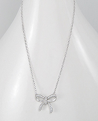 This Listing is for 1 Solid Sterling Silver CZ Bow Necklace . 16" - 17" long Bow pendant is 18mm long x 20mm wide = 0.71" x 0.79" 2.76 grams. Solid Sterling Silver Stamped 925 Gift boxed and ready for giving! Free Shipping in the USA Please note the photo does not show actual size, please refer to description for size. For other great jewelry see my store. Your satisfaction is important to me and 100% guaranteed, or your money back.