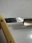 The Solingen Kiebitz 150 Friday Straight Razor features a unique yellow and white handle with intricate inlay details. This straight razor hails from Germany, known for its high-quality craftsmanship in the shaving industry. With a nod to tradition and a touch of style, the Solingen Kiebitz 150 Friday Straight Razor is a collector's item that combines functionality with artistry, making it a standout piece in any shaving collection.