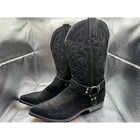 The Solis Calzado women's Western boots feature a black leather upper with a pointed toe and a low heel, making them suitable for casual occasions. The boots have a pull-on closure and are adorned with a harness and embroidered design. These boots are versatile for everyday wear or casual outings. The item is pre-owned. Keywords: Solis Calzado, women's boots, Western style, black leather, pointed toe, low heel, casual boots, harness design, embroidered boots, pull-on boots, pre-owned boots, leather footwear, women's Western boots. Brand: Solis Calzado Us shoe size: Varies Style: Western Color: Black Department: Women Upper material: Leather Toe shape: Pointed Toe Closure: Pull On Heel height: Low (1-1.9 in) Occasion: Casual Features: Harness, Embroidered Design Type: Boot