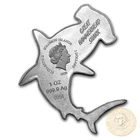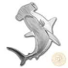IN STOCK - Official distributor Solomon Islands 1 oz HAMMERHEAD SHARK series HUNTERS OF THE DEEP $2 Silver Coin 2019 Shark shaped Proof (Legal tender coin) Serial number on the picture is the example Name of series Specifications Metal Silver Mintage 2500 Fineness (% purity) 99.99% Content (Troy OZ) 1 Denomination (SBD) $2 Weight (g) 31.10 Size (mm) 78 x 33 (approximately) Year of Issue 2019 Country Solomon Islands Edge Smooth Quality Proof Decoration Shark shaped; Serial number Package Album-folder with interesting facts Certificate of Authenticity Yes IN STOCK The known species range from 0.9 to 6.0 m (3.0 to 19.7 ft) in length and weigh from 3 to 580 kg (6.6 to 1,278.7 lb).They are usually light gray and have a greenish tint. Their bellies are white, which allows them to blend into the ocean when viewed from the bottom and sneak up on their prey. Their heads have lateral projections which give them a hammer-like shape. Hammerheads have disproportionately small mouths compared to other shark species. They are also known to form schools during the day, sometimes in groups over 100. In the evening, like other sharks, they become solitary hunters. National Geographic explains that hammerheads can be found in warm tropical waters, but during the summer, they participate in a mass migration to search for cooler waters. A theory has been advanced that the hammer-like shape of the head may have evolved at least in part to enhance the animal's vision. The positioning of the eyes, mounted on the sides of the shark's distinctive hammer head, allows 360° of vision in the vertical plane, meaning the animals can see above and below them at all times. The shape of the head was previously thought to help the shark find food, aiding in close-quarters maneuverability, and allowing sharp turning movement without losing stability. However, the unusual structure of its vertebrae has been found to be instrumental in making the turns correctly, more often than the shape of its head, though it would also shift and provide lift. From what is known about the winghead shark, the shape of the hammerhead apparently has to do with an evolved sensory function. Like all sharks, hammerheads have electroreceptory sensory pores called ampullae of Lorenzini. The pores on the shark's head lead to sensory tubes, which detect electricity given off by other living creatures.By distributing the receptors over a wider area, like a larger radio antenna, hammerheads can sweep for prey more effectively. We do not accept cancellations once your order is placed. Your benefits: - High international collectible demand - Investment opportunity in collectibles - Great gift idea