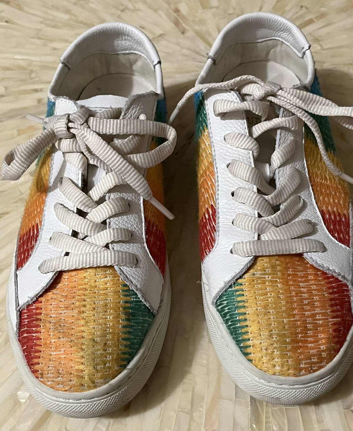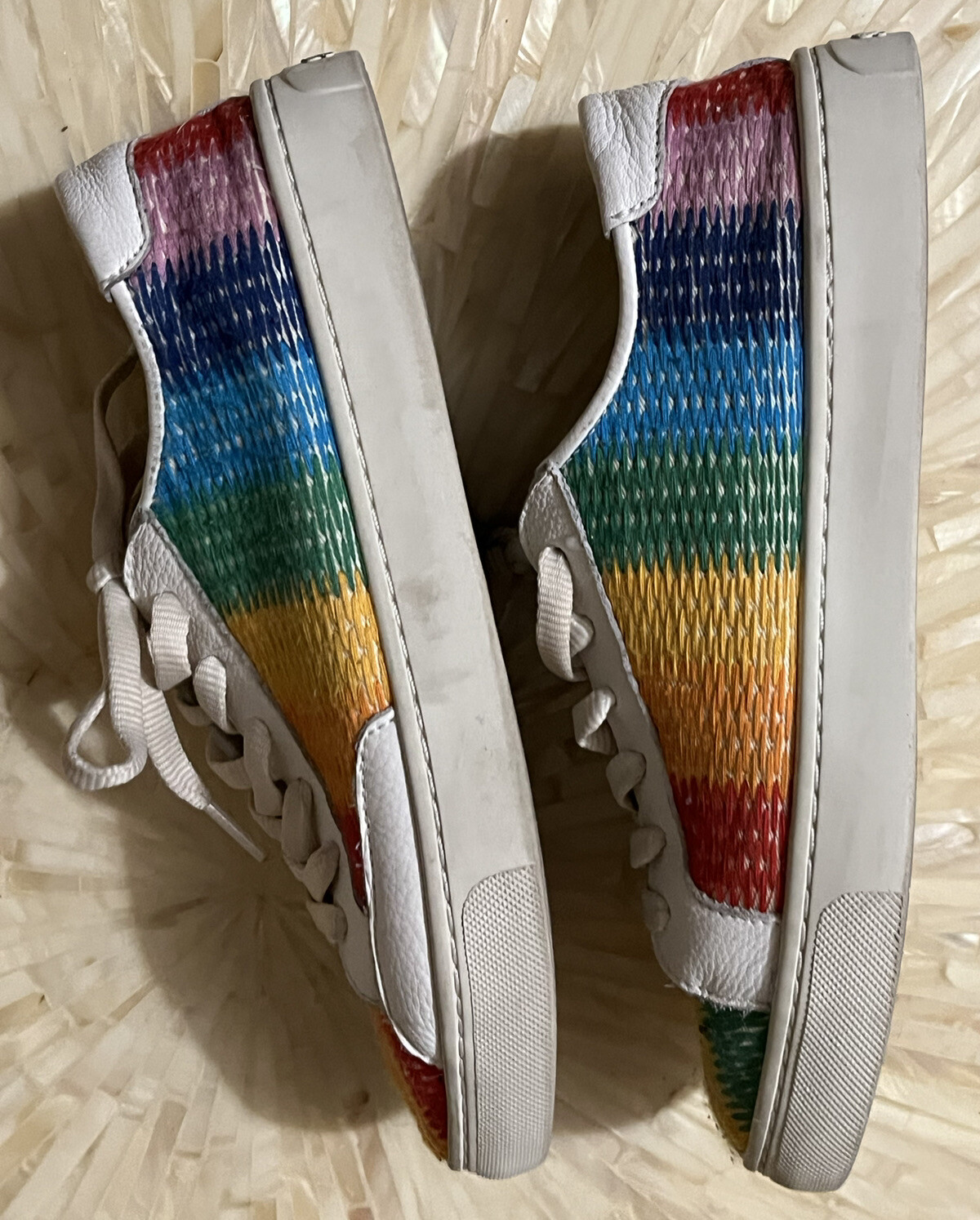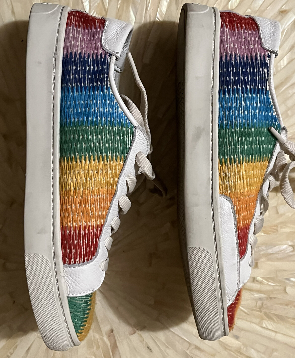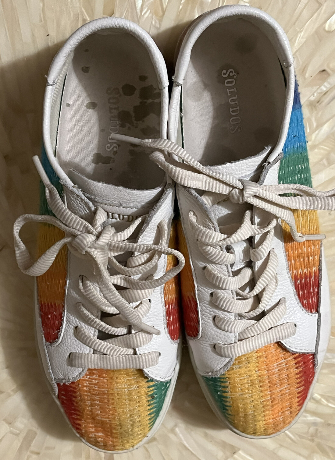 Soludos Ibiza Shoes Leather Rainbow Multicolor Ombre Weave Fabric Sneakers Women's Tag Size 8.5 Pre-owned mark on right toe area, light wear
