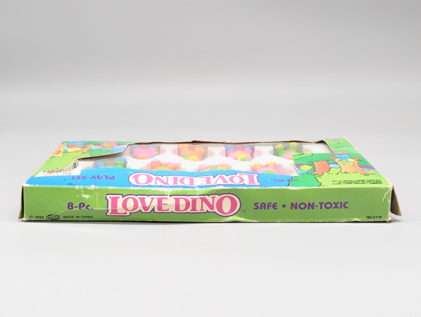 Soma 1993 Vintage Love Dino Dinosaur Set of 8 Safe Non Toxic Play Set Figures Packaging has some wear
