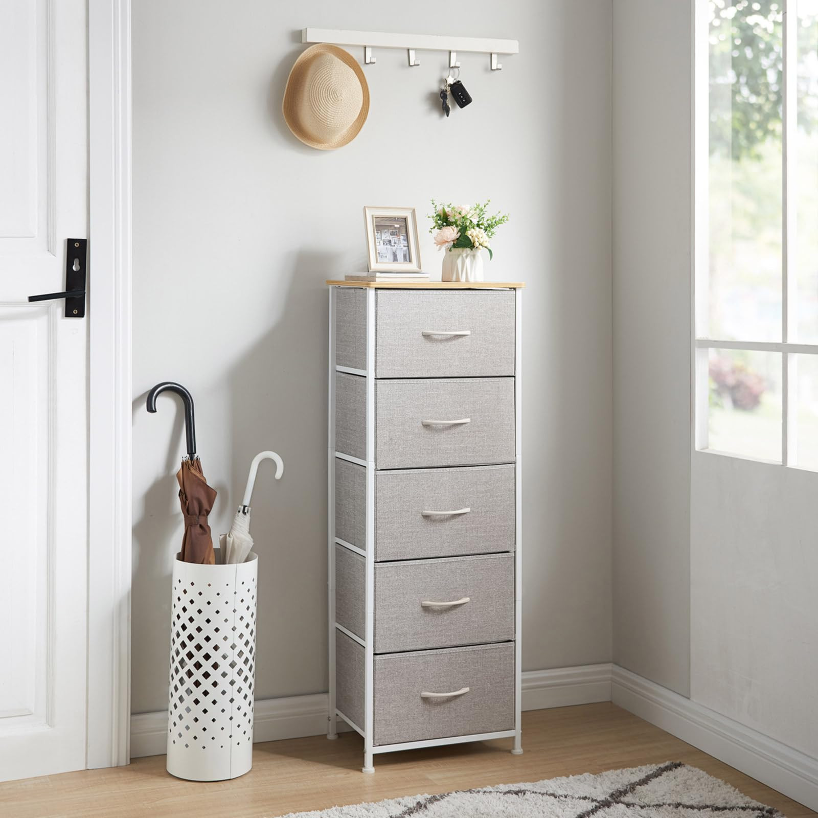 π‘ Multipurpose: Somdot 5 drawers dresser fits in many locations throughout your home. It can be used as a storage stand in entryway, as a nightstand in bedroom, as an end table in living room, as a toy storage in nursery, or placed inside the closet to create extra storage. π‘ High Quality: Strong steel frame, durable wood board, adjustable plastic feet and premium fabric drawers all contribute to its sturdy construction to ensure durability against wear and tear over time. π‘ Easy Assembly: Hardware is included for hassle-free assembly. Follow the instruction and you can put it together in a few steps. Drawer dimension 14.4 inches (W) x 10.8 inches (D) x 8.3 inches (H); Overall dimension 16.5 inches (W) x 11.8 inches (D) x 45.1 inches (H). π‘ Stylish & Smart: Simple and modern style makes it fit to any decor. Lightweight design and 5 removable drawers are convenient for daily use. It works well in small areas while providing plenty of storage space, and mixes & matches with Somdot storage dressers or chest of drawers for a unique home style. π‘ 24/7 Service: Somdot professional support team are on standby. Please contact us with any issue at any time. We aim to bring you 100% satisfaction and provide 30-Day Money-Back Guarantee.