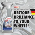 Sonax (230200-755) Wheel Cleaner Full Effect - 16.9 fl Oz (Package may vary), Fluorescent Yellow Product Details Brand: Sonax Item Form: Spray Scent: Citrus Specific Uses For Product: Automotive Exterior Material Feature: Spray Manufacturer: Sonax Brand: Sonax Item Weight: 1 pounds Product Dimensions: 3.5 x 2.25 x 9 inches Country of Origin: Germany Item model number: 230200-755 Is Discontinued By Manufacturer: No Manufacturer Part Number: 230200755 Date First Available: June 25, 2010 Safe On All Factory Installed Wheels: Acid-Free, Ph Balanced Formula Won'T Damage Wheels, Safe On Various Wheel Finishes Including: Chrome, Aluminum, Steel, Clear Coated, Pvd, Painted, Plastic Wheel Covers, And Magnesium Watch It Work: The Color Changing Formula Activates When It Comes In Contact With The Ferrous Metals (Iron) From Brake Dust Or Other Dirt And Grime. Full Effect Sprays On Fluorescent Yellow, Then Turns Deep Red Or Purple As It Dissolves Brake Dust Advanced And Effective Chemistry: Full Effect, Non Acid Wheel Cleaner Attaches And Emulsifies Stubborn Baked On Brake Dust. Simply Spray On, Let It Dwell, Watch For Color Change, Agitate If Necessary, And Rinse With Water. *For Best Results Rinse Using High Pressure Water Full Effect Is Great For Both The Diy (Do-It-Yourself) And The Professional. Effortlessly Achieve Shining Wheels That Will Make Your Vehicle Look Like It Just Rolled Off The Showroom Floor Special wheel cleaner to remove stubborn dirt such as baked on brake dust and other road grime from painted steel and light alloy wheel rims - also chromed and polished rims. Its neitral pH value ensures gentle cleaning. Wheel coating or lug nuts will not be damaged.