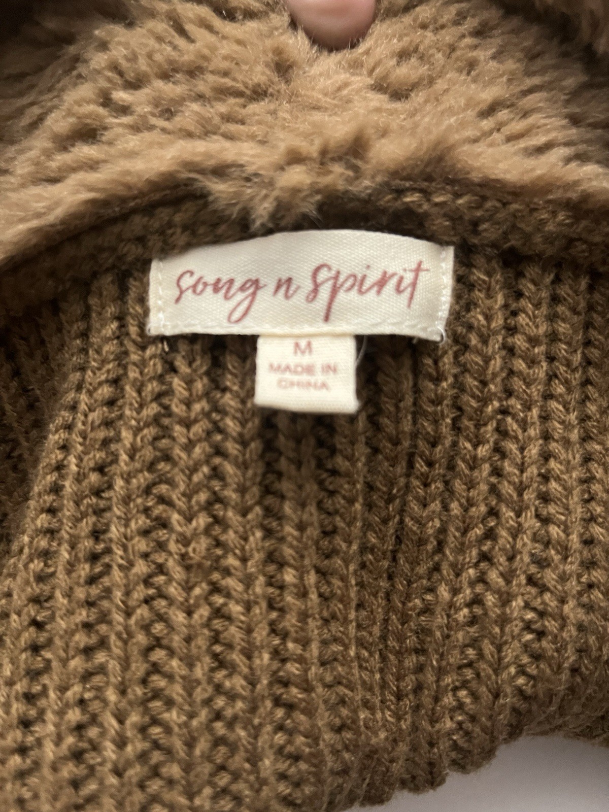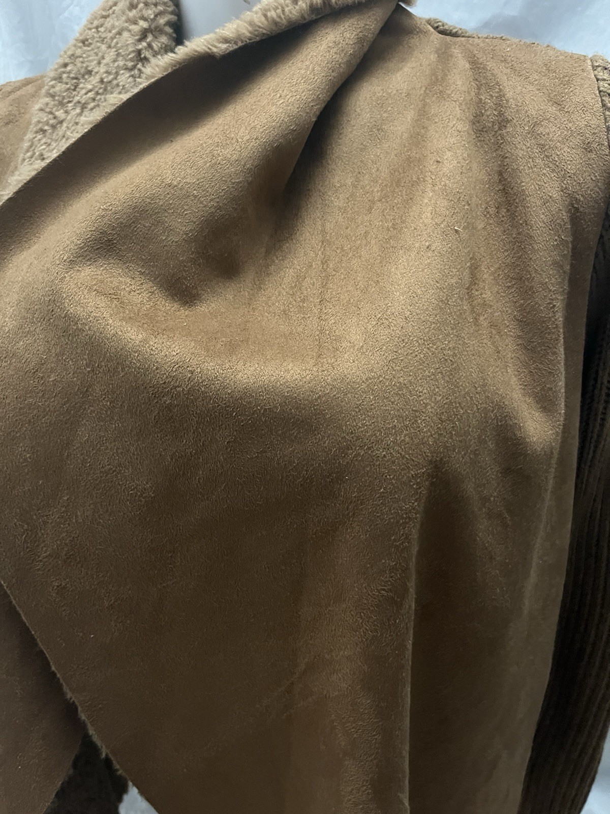 Song N Spirit Brown Suede/Fur/Knit Jacket w/ Shearling Collar Waterfall Design M