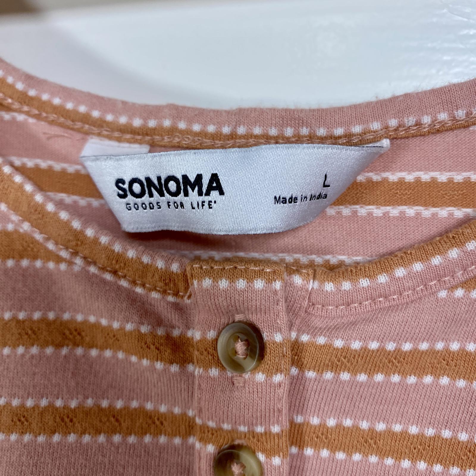 Elevate your casual wardrobe with this stylish Sonoma women's tank top. Featuring a charming striped pattern in peach and tan, this top boasts a comfortable fit perfect for warm days. BRAND: Sonoma CONDITION: Good Pre-Owned US SIZE: Large | Chest 18" Length 20.5" COLOR: Peach and Tan FEATURES/ACCENTS: - Soft, breathable fabric for all-day comfort - Three-button henley neckline for a stylish touch - Versatile for layering or wearing on its own - Easy to pair with shorts, jeans, or skirts - Ideal for casual outings or lounging at home MATERIAL: Cotton ABOUT ME: I accept reasonable offers. Same or next day shipping. Questions? I’m always here to help with sizing, styling, or other inquiries. Thanks for stopping by! Have a great day. 😻ClosetKitty23 +