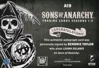 Sons of Anarchy Seasons 1-3 Trading Card Dendrie Taylor as ‘Luann Delaney’ A19 Autograph card released by Cryptozoic The Card is in Mint / Near Mint Condition. The card in the photo is of the actual card you will receive, card will be shipped in Protective packaging. Shipping UK - Free UK Postage Shipping Rest of World - Costs charged via Global Shipping Program.