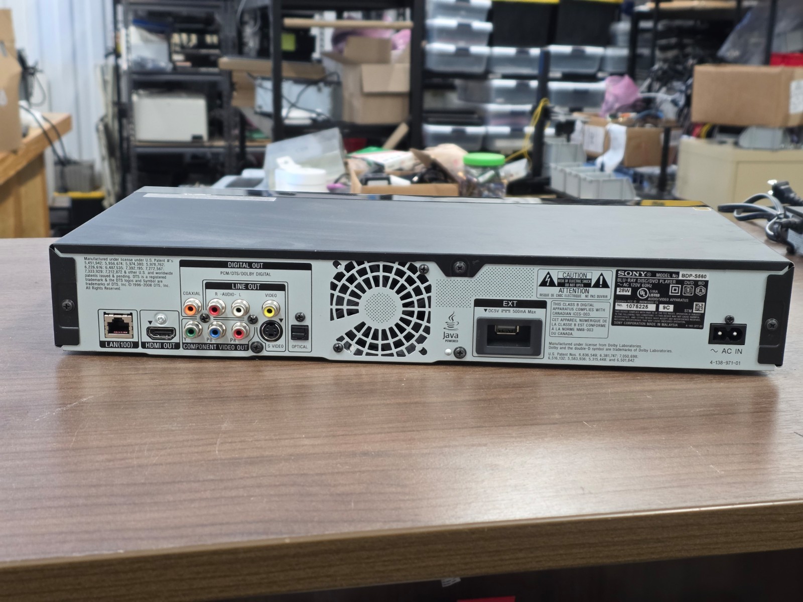 Features:Internet/Media StreamerItem Height:3Model:BDP-S560Item Weight:5.38Material:Plastic/MetalDimensions:18in L x 9in W x 3in H approximateItem Width:9Source:Estate SaleDate Made:2000-2009Connectivity:HDMIPlayable Media Format:DVD-R, CD, DVD, Blu-ray BD-RE, Blu-ray, DVD-RW, CD-R, JPEG, DVD+RW, CD-RW, DVD+RCountry of Origin:UnknownType:Blu-ray PlayerMPN:BDPS560Color:BlackItem Length:17.25Brand:Sony