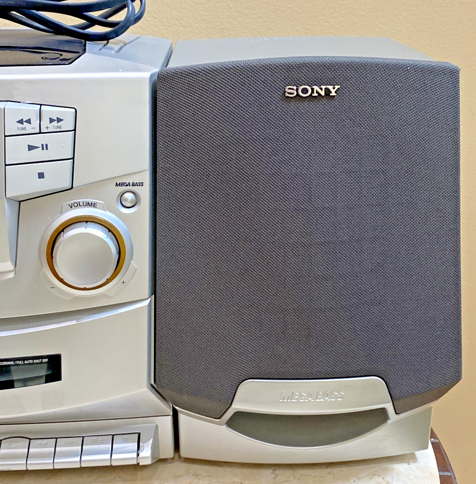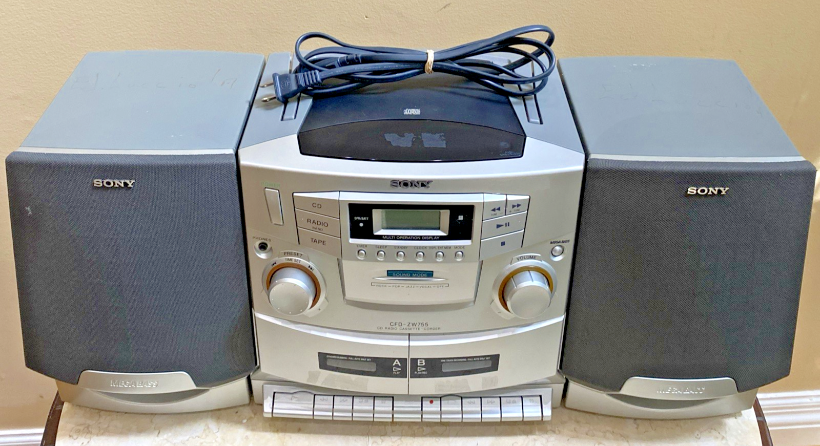 The Sony CFD-ZW755 CD/Dual Cassette AM/FM Radio Boombox is a fully functional portable stereo system that offers a combination of CD playback, dual cassette tape decks, and AM/FM radio capabilities. This boombox is from the trusted brand Sony and features a sleek design and compact size, making it ideal for on-the-go or at-home use. With its retro appeal and modern functionality, this boombox is perfect for listening to your favorite music in various formats with ease.