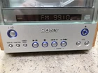 This Sony CMT-EX1 CD player is a vertical loading disc player with an AM/FM band. It can play CDs and has a CD changer capacity of 1. The player has stereo L/R RCA, digital optical TOSLINK, and raw cable speaker jacks as audio outputs. It also has a headphone jack. It is a compact and shelf stereo that is perfect for home audio. The player has been tested and works perfectly. Please look over all photos as they are part of the description. Overall great condition with some minor scuffs and marks and some wear on the corners of the speaker cloth. Everything is tested and works great! NO REMOTE! I will include the short speaker wires I used for testing but you will need to supply your own if you want them longer. No CD included - used for testing only. Comes as shown in photos minus the testing CD. Smoke free environment Shipped within 24 hours of payment Check out our store for other unique items listed daily! Payment is expected within 24 hours of best offer acceptance. Thank you! All items sold as is, no returns - however I am happy to answer any questions or send more photos prior to purchase.