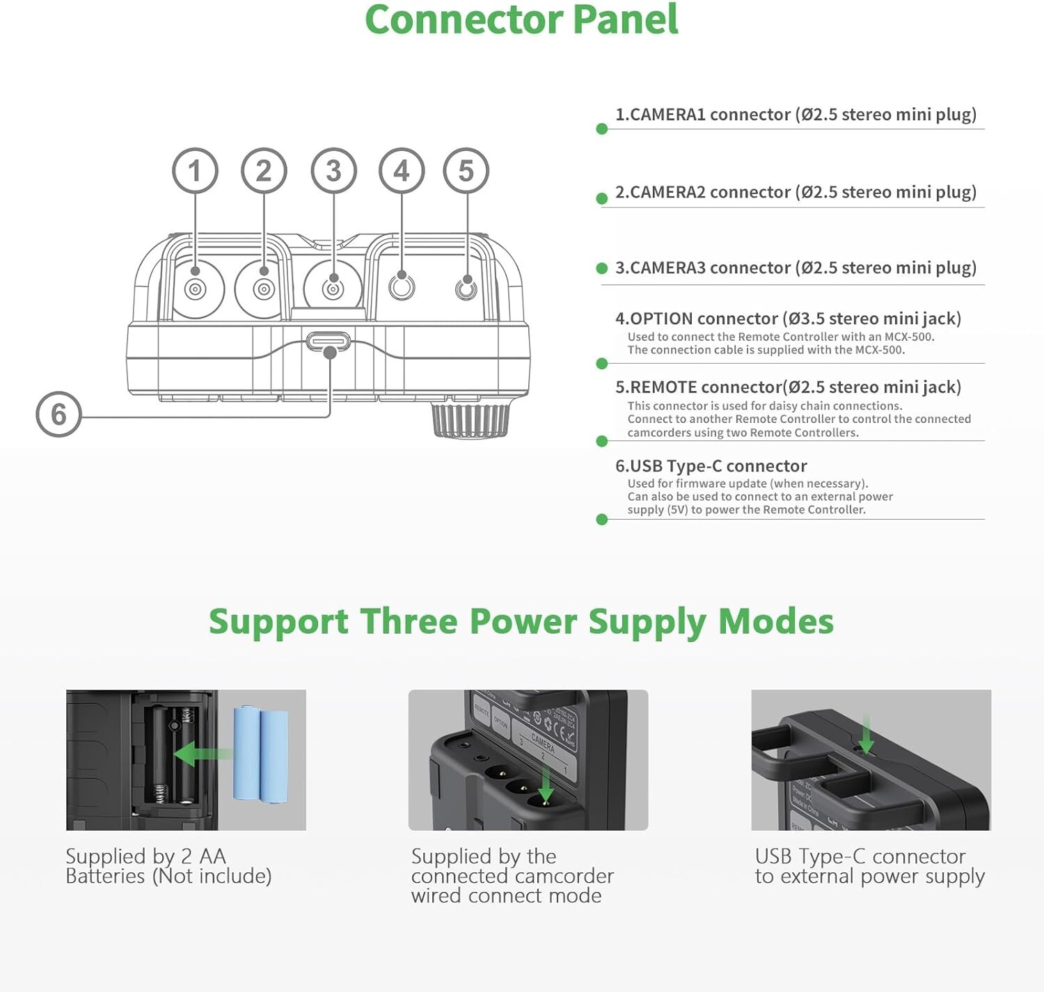 About this item Compatible with Multiple Sony Camcorder: For Sony camcorders with REMOTE or LANC(2.5mm) termina. Compatible with Sony HXR-NX200,NX80,NX5R,NX100,NX3,NX1,NX5; HXR-MC2500,MC2000,MC1500,MC88; DSR-PD150P,PD177P,PD198P; NEX-FS700/R,FS100,EA50; HVR-Z7,Z5,S270,HD1000,A1,V1,Z1,Etc.Some features vary by model, please refer to the product details for specific information. Upgrade Multifunctional Control: This ZC-4 cameras remote control is developed specifically for Sony cameras that require remote wireless operation, integrating multiple functions into one.It support Video Recording; ZOOM control (zoom in/zoom out,3-speed adjustment); FOUCS adjust(auto focus,5-speed adjustment);IRIS control (auto iris adjustment,3-speed adjustment); ND Filter Density(Mode:ND/Dial). Control Multiple Cameras: Up to 4 cameras can be controlled simultaneously, enabling multi angle and all-round shooting plans. The daisy chain can connect multiple cameras and two remote controls to achieve synchronous control and signal transmission. And compatible with Sony MCX-500, users can easily switch between various functions without any trouble. More Comprehensive Features: This camcorder zoom controller can adjust White blance, Gain, shutter, Thumbnail, Camcorder Menu Settings and on-Screen Display, Six Assignable Keys. Supports both wireless(remote distance:164ft) and wired(remote distance:3.28ft to 32.8ft ) connections.It can be used handheld, placed on a table, attached to a tripod arm, widely used in live streaming, shooting advertisements,video conferences etc. Product Includes and Power Supply: 1 * Remote Controller, 1 * Receiver, 1 * Attachment Plate, 1 * USB Type-C Cable (1.6 ft), 1 * Remote Cable (3.28 ft), 1 * Remote Cable (32.8 ft), 1 * Portable Bags,1 * Manual. There are three power supply methods for you to choose from, 2 AA 1.5V batteries (not included), USB Type C connected to an external power source, and reverse power supply by connecting the camera with a cable. I am in no way associated with any of the companies of the items I have listed. I do not offer warranties, refunds, returns, troubleshooting or installation advice. Shipping included in the pricing continental United States ONLY. Pictures are taken during packing for insurance purposes to prove that they were packaged properly. All items are packaged to withstand reasonable handling during shipping. Once items are shipped out, I am not responsible for any damages. If your item is damaged far beyond what is disclosed in the original listing; please contact the shipping service directly. Prices are at a bargain. There will be no r efunds. All sales are final.