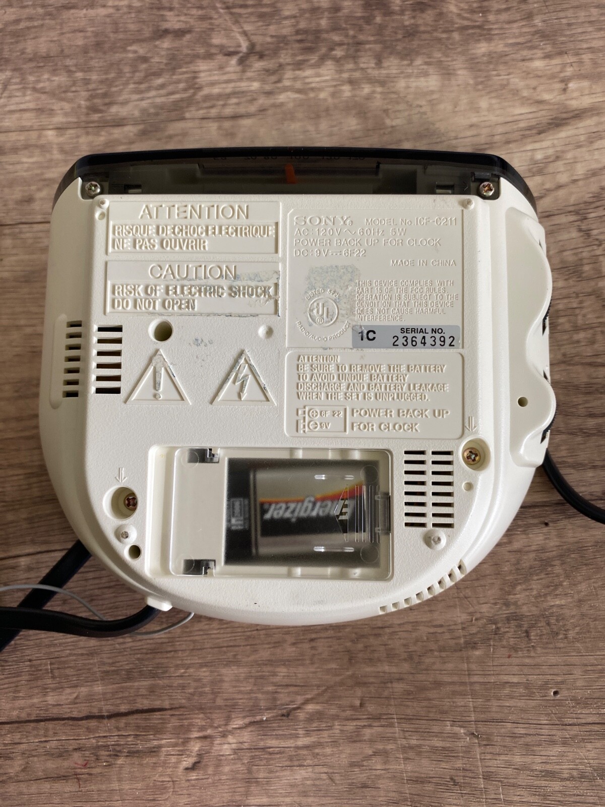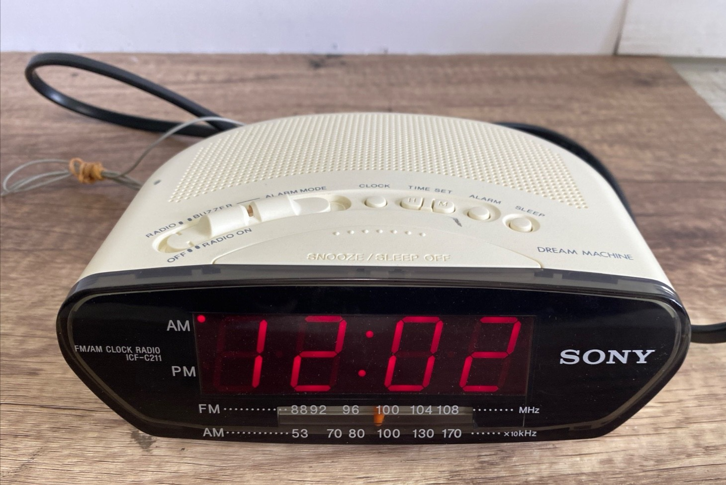 The Sony Dream Machine ICFC211 AM FM Alarm Digital Clock Radio is a modern, oval-shaped unit designed for adults and teens. It features a digital display with Arabic numerals, powered by a quartz movement. This clock radio comes in a sleek gray plastic finish, perfect for any room like the bedroom, garage, or home office. With features such as AM/FM radio, alarm, and battery backup, this Sony clock radio is a reliable and stylish addition to your space.