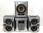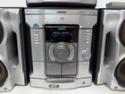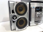 The Sony MHC-GX45 Compact Hi-Fi Stereo System is a 1st generation unit that includes a Compact Disc Deck Receiver with a CD changer capacity of 3. It features AM/FM radio, cassette tape playback, and MP3 compatibility. The system comes in a silver color and includes various audio outputs such as headphone jack, stereo RCA, and raw cable speaker jacks. It also has an infrared connectivity option and a manufacturer warranty of 1 month. The product includes a remote control and is part of the Sony MHC product line. Excellent condition. Tested - sounds great. light scratches on Subwoofer and signs of use but overall great! Great sound!