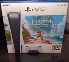 Sony PS5 Console Disc Edition Horizon Forbidden West Bundle - White. Like New, used for only a week and returned to its box. No time to play it. Outer box covering has a tear on one side, but everything else is in top condition. Code for Horizon Forbidden West is unredeemed and can be used for a digital purchase of the full game right onto the console. Entire bundle comes with all things it initially sold with: -PS5 Disc Version Console -Horizon Forbidden West PS5 Full Game Download Code -1 DualSense Wireless Controller -HDMI Cable -AC Power Cable -USB-A to USB-C Cable for Controller Charging -Console Stand
