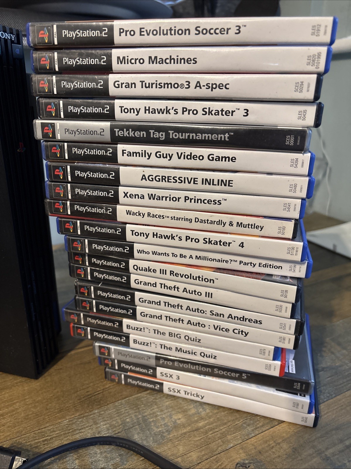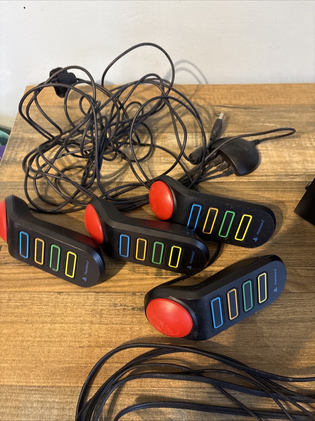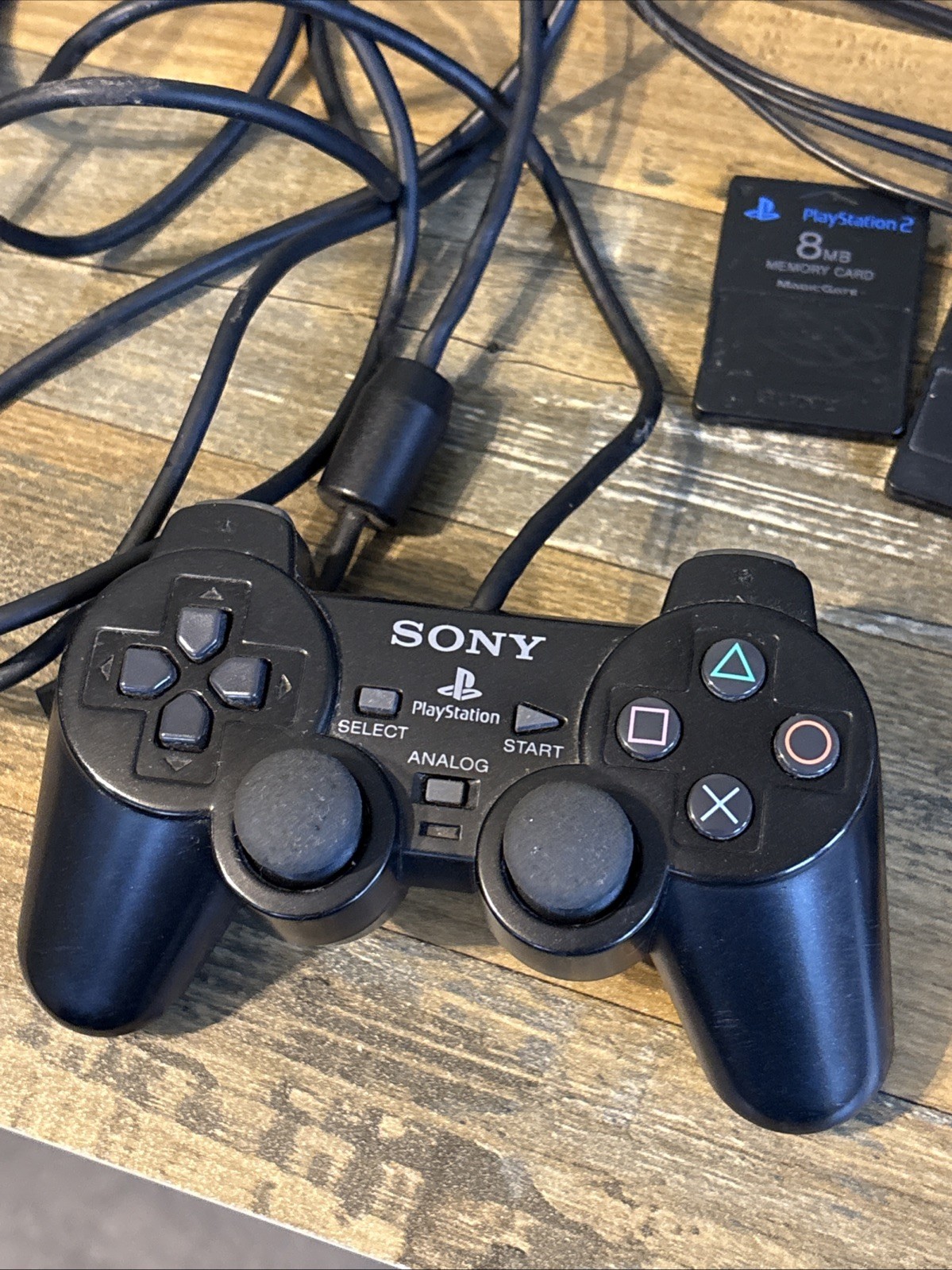 Listed as spares repairs as I can’t get the controller x button to work to access the memory settings and check everything the console switches on powers up onto the screen loads games etc just the controller isn’t working 100% the arrow buttons are fine but the x triangle etc are doing nothing, Console 2 memory cards 20 games Buzz controllers Power cable Scart cable See pictures for any other info. Thanks