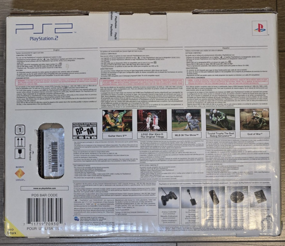 Color:SilverPlatform:Sony PlayStation 2Brand:SonyType:ConsoleMPN:SCPH-77001UPC:0711719709305Model:PlayStation 2 Slimgtin13:0711719709305Audio Output Support:Stereo_desc_:Sony PlayStation 2 is a console that provides hours of entertainment. Thanks to the integrated processor, this satin silver NTSC-U/C (US/CA) console offers seamless gaming experience. In addition, the device helps you enjoy your favorite games every time.Console Color:Satin Silver