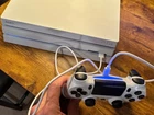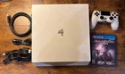 Experience the ultimate gaming console with the Sony PlayStation 4 Pro 1TB Destiny Edition. This white console bundle comes with a variety of features including Blu-Ray compatibility, Wi-Fi capability, and internet browsing. The console has a storage capacity of 1TB and supports 4K (UHD) resolution for an immersive gaming experience. The PlayStation 4 Pro is equipped with multiple connectivity options including headphone jack, HDMI, and USB-C. The console is compatible with the Sony PlayStation 4 platform and has a region code of NTSC-U/C (US/Canada). The bundle includes the console and the popular game, Destiny. Get ready to dive into the world of gaming with this top-of-the-line console. The console is really striking and includes the matching white controller with a final fantasy game and all the cords necessary to get gaming up and running fast. The console has been tested and connects to the internet and to PSN. The disc drive loads and plays games. Serial number as seen The price is firm. Returns accepted within 30 days (deductions made for damage/misuse/missing items) Ships USPS Ground a signature may be required (no freight forwarders) if your address cannot be verified via gmaps your order will be cancelled Would make a wonderful gift 🎁