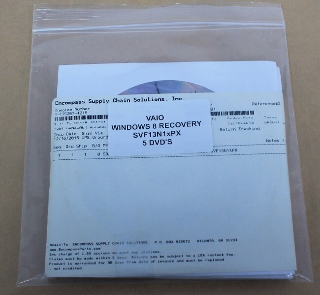 C_A_Electronics17 IS OFFERING A Sony Vaio Laptop Computer Recovery Discs - SVF13N1xPX - Win 8 - AT A GREAT BUY IT NOW PRICE. Sony Vaio Laptop Computer Recovery Discs - SVF13N1xPX- Win 8 - Includes: 5 DVD's What is in the picture is exactly what you will receive. WE DO NOT RESERVE ITEMS!! C_A_Electronics17 IS OFFERING FREE SHIPPING WITH THIS ITEM. WE ALSO LEAVE IMMEDIATE FEEDBACK!!. ______________________________________________________________________________________________ C_A_Electronics17 is your source for computer parts and peripherals. We have over 100,000 items in our inventory, with parts from all major brands, including Compaq, Dell, HP, Intel, IBM and Gateway. We're happy to provide a single part or hundreds of them; and we're very pleased to offer completely refurbished equipment, including desktops, laptops, notebooks, servers, LCD monitors, power supplies, system boards, motherboards, components, and more! we pride ourselves in great customer service, so if you receive a piece of hardware that you are not satisfied with, please contact us immediately, especially before leaving any initial feedback. Buyer is responsible to verify compatibility. Shipping: Free and Fast. We ship by USPS on the same or next business day of receiving the full payment confirmation. Shipping charges are NON-Refundable. ** IF FREE shipping is offered, Its only offered to the lower 48 states. ** **We ship to the confirmed address on file with PayPal and will not ship to a third party address** *If necessary correct address before payment is made, correction made after payment is submitted will not reflect on your purchase* C & A Electronics, INC. 1522 Centinela Ave Inglewood CA 90302 310-SIX SEVEN TWO-EIGHT NINE NINE ONE *Hablamos Español* If you need to contact us please use Ebay’s ask a question feature on the listing you were interested in, We will do our best to answer your messages with in 24 hours. or give us a call. Our business hours are Monday-Friday 9AM-6:00PM, Saturday and Sunday (Closed). Please be aware that there may be a delay in answering messages during weekends and holidays. Thanks for visiting our page!!!!!
