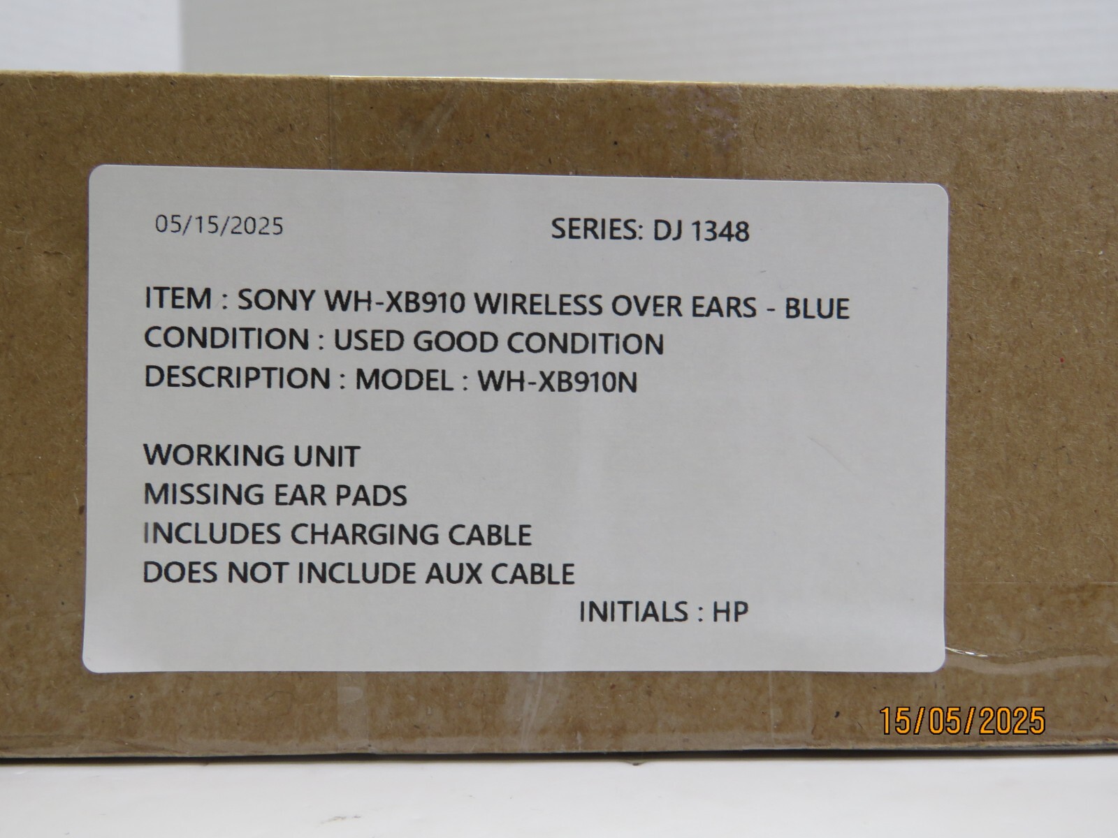 Sony WH-XB910N Wireless Bluetooth Headphones (Missing Ear Pads) [DJ1348] Functional Condition: Tested and Functional. Cosmetic Condition: This is a Used Item and Normal Wear (Scuffs & Scratches) is Expected. Items included in this listing: Headset Charging Cable Items NOT included in this listing: Aux Cable Case Thank you for Shopping with Us! ENJOY Free Shipping in USA & Low Cost Shipping to CANADA! Terms of Sale NOTE: Our Listings only include items as pictured - Please do not assume any item is included if its not pictured. We will try our best to picture all items included in this listing as well as its cosmetic condition. We Guarantee & Stand Behind our product and commitment to provide you with o nly Original, Branded, OEM & Genuine Products Shipping A complete and correct shipping address is essential. We cannot guarantee the shipping address can be changed after checkout. Sales Tax will be charged to all Canadian & USA Buyers. Combined shipping is not guaranteed. We are unable to change any content of your order based on the eBay checkout note or PayPal message. Customers with shipping addresses outside of the U.S.A and Canada are responsible for all duties and import taxes. Please contact your customs for information Bidding All items are accurately described and pictured. Please ensure you are consciously bidding on the items as described. Payment Payments are expected at the time of purchase or in case of Auctions, at the end of auctions. Payments are managed via eBay Managed Payments Contact Us Your positive feedbacks are extremely valuable to us. If you have any concerns about your order, please contact us through eBay message to resolve any issues before leaving a negative feedback or opening a dispute. We will reply within 24 Hours Return Policy All items are in used condition unless specified.