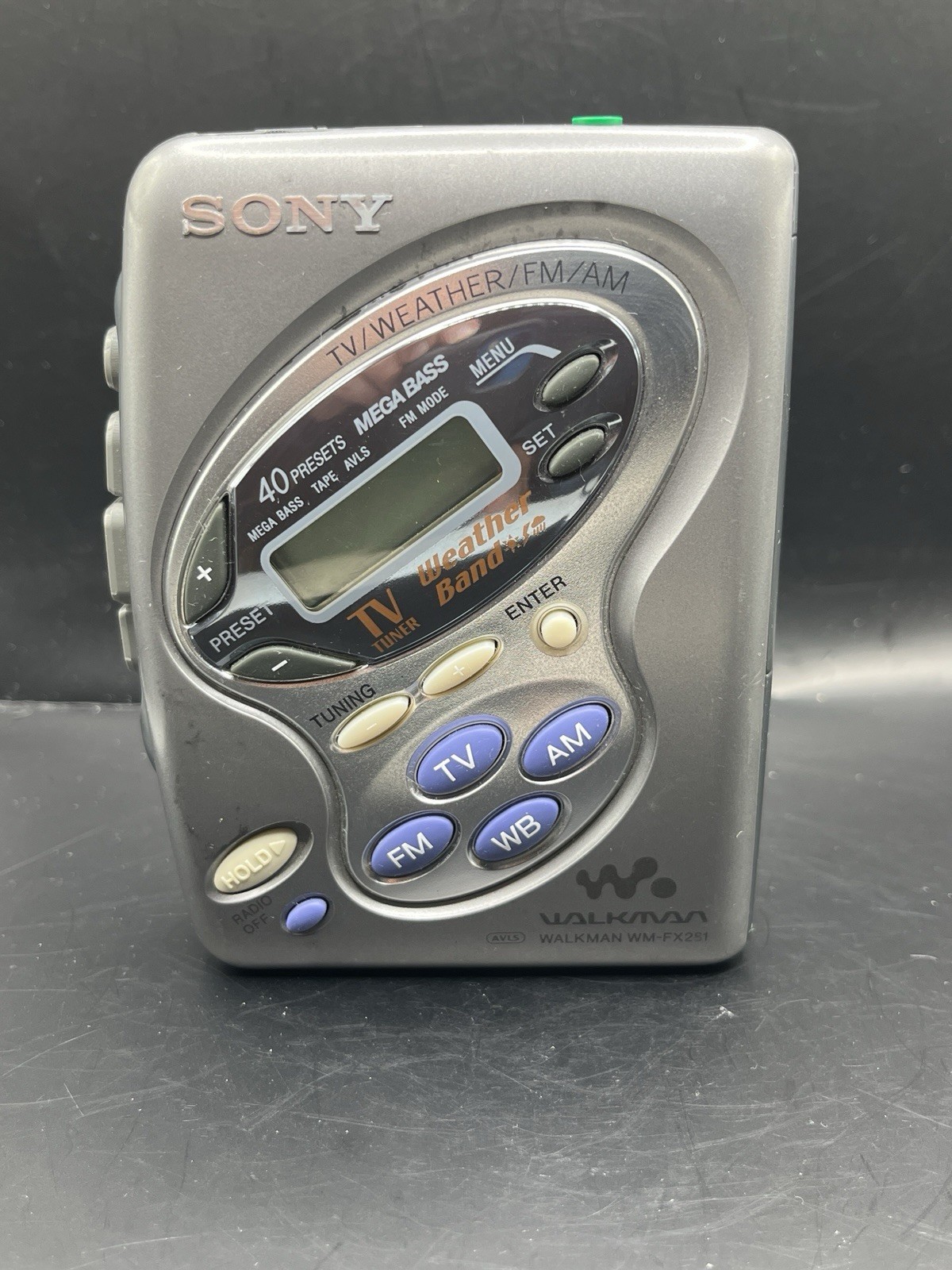 Fully functional. Cleaned inside and out. Belts replaced. Head cleaned. Clean battery compartment. Brand new retro Sony MDR-010 style headphones with orange pads included. TV channel bands may not be received in your area as TV is now broadcast in HD signal. Weather band radio still works fine.