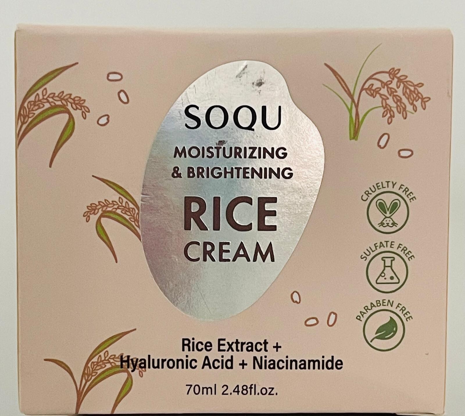 Soqu Rice Cream 2.48 fl oz Moisturizing Brightening w/ Hyaluronic & Niacinamide.