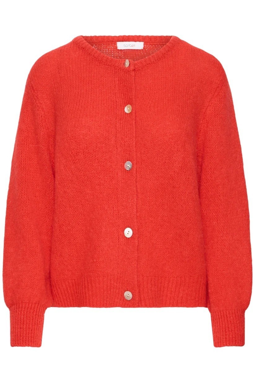 The Sorbet Gulvig Knit Cardigan is a stylish and versatile addition to any woman's wardrobe. Made from a luxurious blend of mohair, polyamide, wool, and acrylic, this cardigan features a round neck and a regular fit with ribbed cuffs and hem. The knit fabric adds texture and warmth, making it perfect for layering over outfits in cooler weather. With its sleek design and quality materials, this Sorbet cardigan is sure to become a timeless favourite in any woman's collection. Available in a choice of colours. 44% Acrylic, 26% Polyamide, 20% Mohair, 10% Wool, Delicate Wash. RRP £85.00 OUR PRICE £27.99