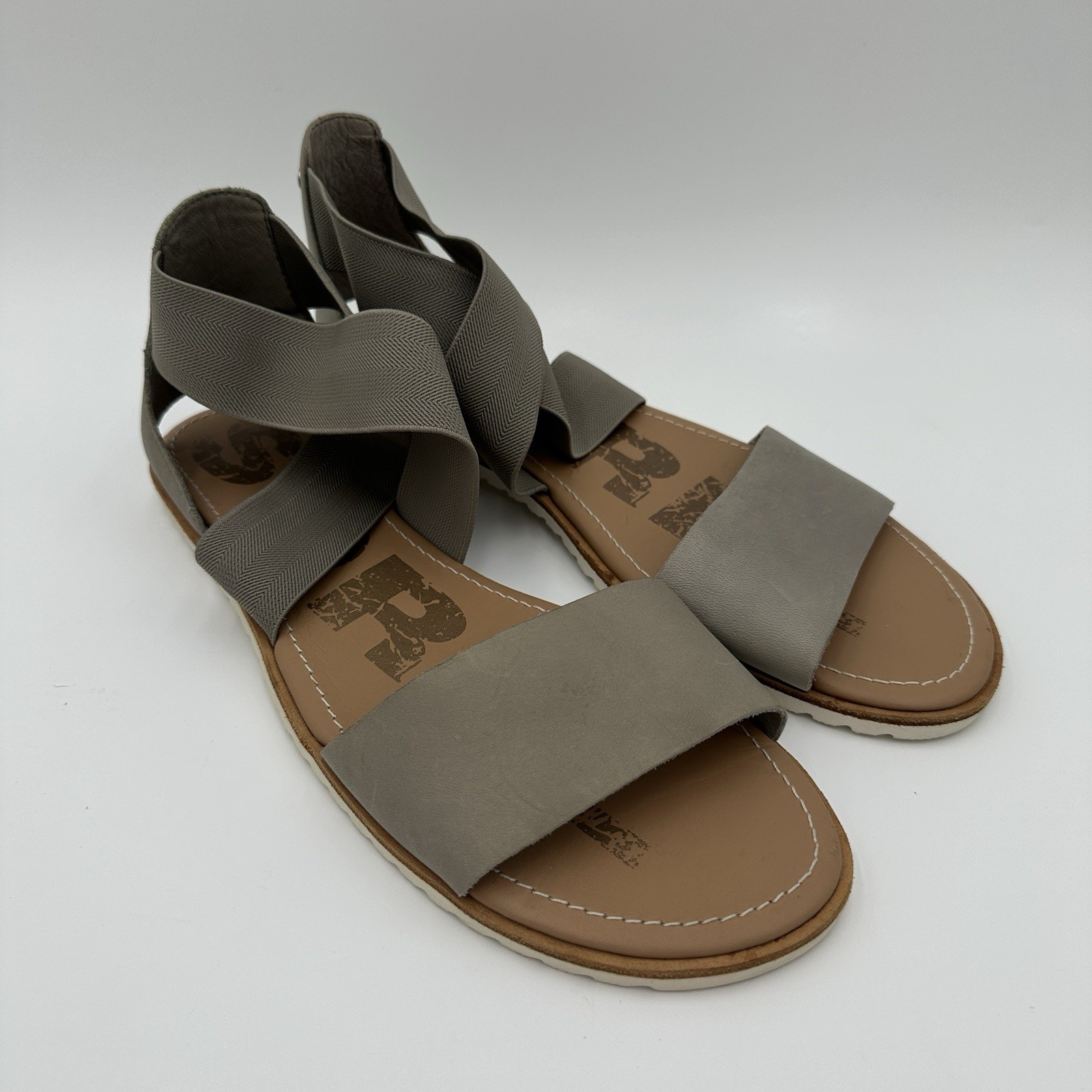 Sorel Ella II Gray Leather Sandals Flats Shoes Womens Size 10 Strappy Pre-Owned Excellent Used Condition Ships next day Barely worn