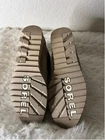Sorel Harlowe Tan Suede Shearling Lace Cozy Waterproof Winter Booties Women 11 - Size 11 - Color - Gray - Suede & Shearling Upper - Microfleece Lining - Rubber Lug Soles - Round Toe - Lace Up - Cushioned Insoles - Waterproof - Heel Height Measures Approximately 1" - Platform Measures Approximately .5" - Shaft Height Measures Approximately 5" - Good Used Condition- has a spot in front of the left shoe (please look at pictures).