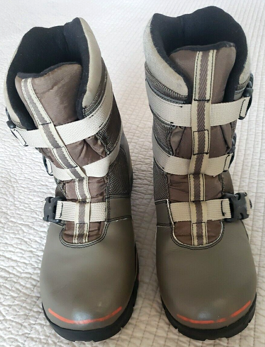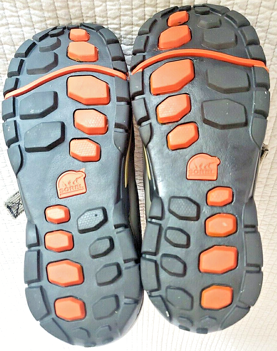 Get ready for cooler weather with these stylish and functional waterproof Sorel Method 360 boots. Designed for Men/Women with grayish/green color, these boots feature a warm lining. The buckle closure and adjustable straps provide a secure fit, while the rubber outsole ensures slip-resistance and durability. The boots are size US 6 / Uk 5/ EU 38. Great used condition with some signs of wear (see pics).