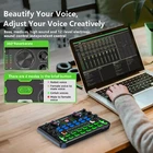 Features: 1. [Built-in battery] Equipped with a 500mAh lithium battery (which can be used for about 3 hours when the power amplifier is turned on), it is fully functional, easy to operate, and convenient to use. It is common in mobile phones and computers. 2. [Adjustable high and low pitched] High/medium/low pitched can be adjusted, with high pitched making the sound full, clear, and penetrating, while mid pitched making the sound line more stable, and low pitched making the sound cleaner and transparent. 3. [One click silencing] One click silencing effectively eliminates singing, making the live broadcast sound clearer and more penetrating. 4. [Multi order tuning] Multi order electronic tuning. Professional electronic tuning, different electronic tuning, changing different tuning. 5. [Applicable to multiple platforms] Simultaneous live streaming on multiple platforms. Live streaming mode, one click switching, easy to handle various occasions, making your live streaming more professional. Specifications: Charging interface: TYPE-C interface Analog audio output: LT/RT, stereo Dynamic range: 1kHz: 105dB Crosstalk: -106dB Signal to noise ratio: 285dB Output level (Vrms): Vrms (1.0-2.0V 10kR) Headphone output power: 5 mW x2CH Frequency response: 5MHz (<-3dB) Packaging List: 1 * Sound card 1 * Audio cable 1 * Charging cable 1 * Instructions