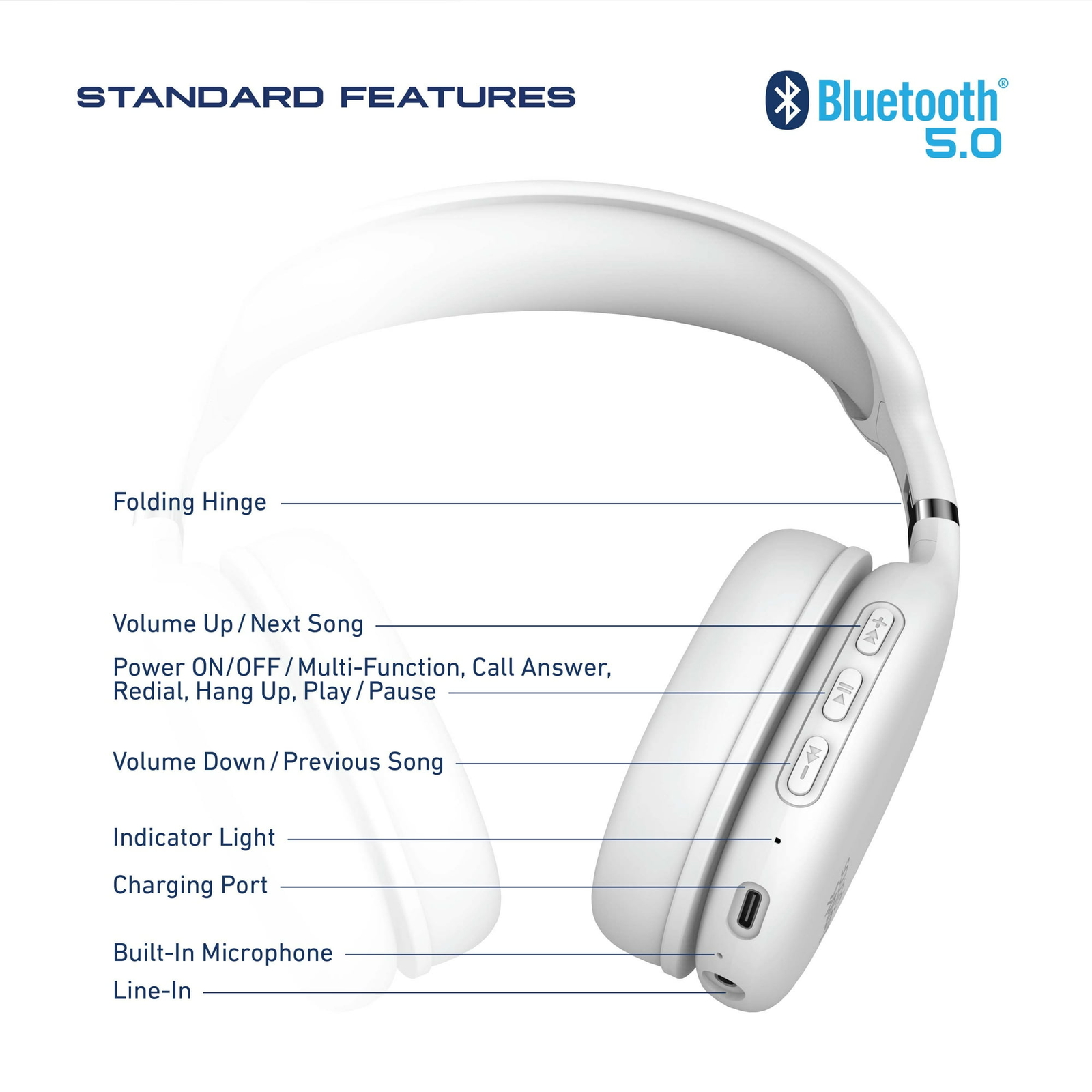 Listen to music without interruptions with the SoundPlay Foldable Wireless Headphones! With up to 20 hours of playback time, these foldable headphones let you enjoy your favorite tracks all day long. Featuring Bluetooth and AUX compatibility, they provide high-def sound for an immersive audio experience. USB rechargeable, lightweight, and designed for all-day wear, the SoundPlay Foldable Wireless Headphones are the perfect everyday audio companions! Auto-pairing wireless headphones with HD sound Ultra compact with foldable design Works wirelessly with Bluetooth compatibility or connects to AUX-enabled devices Can answer, end, redial and reject calls with built-in controls, as well as play, pause, fast forward and rewind music Up to 20 hours of music playback and talk time on a full charge Includes USB-C charging cable and AUX cable
