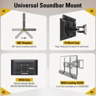 22 lbs Loading capacity The bracket adopts high quality 2 0mm steel fits sound bar up to 22 lbs/10kg Withstood 2 time loading test (44 lbs) for secure and stable use Flexibility with long and short extension plates sets extension plates are adjustable and more flexible for most of TVs with standard TV mounting holes patterns sits above or under TV secure sound bar parallel above or under TV provide clean look with wires running behind TV back Save space without need of shelf and avoid leaving screw holes in wall with mount for better auditory will be enhanced if apply sound bar with wall mounts (fixed tilt full-motion mount) full-motion mount works especially well with sound bar bracket for sound bar installed with sound bar bracket follows mounted TV to move toward same direction for best auditory and view These full motion mounts are with sound bar brackets hardware for TV and sound bar installation easy Installation with all necessary hardware included for TV and sound bar Universal Design - Our soundbar mounting bracket can hold a soundbar up to 15LBS/6.8KG. It fits most of SAMSUNG, SONY, VIZIO, BOSE, YAMAHA Sound Bars. with wall mounts (fixed, tilt, full-motion mount), TV VESA up to 600x400mm. (For Sonos Beam, please refer to soundbar mount MD5426) Multi-Style Assembly - The detachable long extension plates are adjustable, allowing 180 degrees swivel for more mounting flexibility than fixed brackets sold on the market. Easy Installation - Easily secures the soundbar above or below the TV. The teeth on the arms connection lock the soundbar firmly in place, avoiding leaving screw holes in the wall and making the installation a breeze. Necessary Hardware Included - Come with decent instruction and necessary hardware. We provide the L-shaped bracket for soundbar with mounting holes in the bottom. Purchase Support - Our US-based customer support will answer your pre-purchase and installation questions every day. Our TV mount is 10-year warranted!