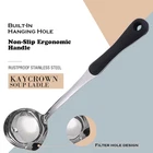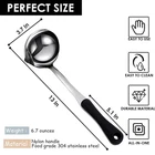 MULTIPURPOSE DESIGN - Designed for skimming out fats from liquids. Our Stainless Steel Straining Ladle is an excellent, all-in-tool for scooping, straining, and pouring. Use it with soups, stocks, vegetables, and more. Bowl has a filter hole for quickly removing fat from liquids such as soups, stocks and gravies. With it, you can eat healthier. SEPARATION PRINCIPLE - Oil is incompatible with water, and the physical properties of oil are lower in density than water. The fat floats on top of the soup, and the filter hole is under the ladle. When pouring, the clear soup first flows out of the lower hole. So as to achieve the effect of oil-water separation. DURABLE MATERIAL - Soup ladle is made from high-quality 304 food-stainless steel with a polished finish. Safe, rustproof, durable. Heavy-gauge stainless steel won't snap, bend or stain over time. Safe to use in nonstick cookware. EASY TO USE AND CLEAN - Not only can the stainless steel spoon be used as a traditional soup spoon, it can also filter fat and soup residue easily. Easy to operate and less mess. It boasts an ergonomic heat-insulating anti-scalding nylon handle that provides a secure, slip-resistant grip. Holes at the end of the handle for easy hanging. Dishwasher-safe. OUR "MADE-TO-MEASURE" - As a responsible seller, Our aim is to provide customers with the best quality products and services. If you are not satisfied with our products, please us as soon as possible. We will provide you with a satisfactory solution even after the return window was closed.