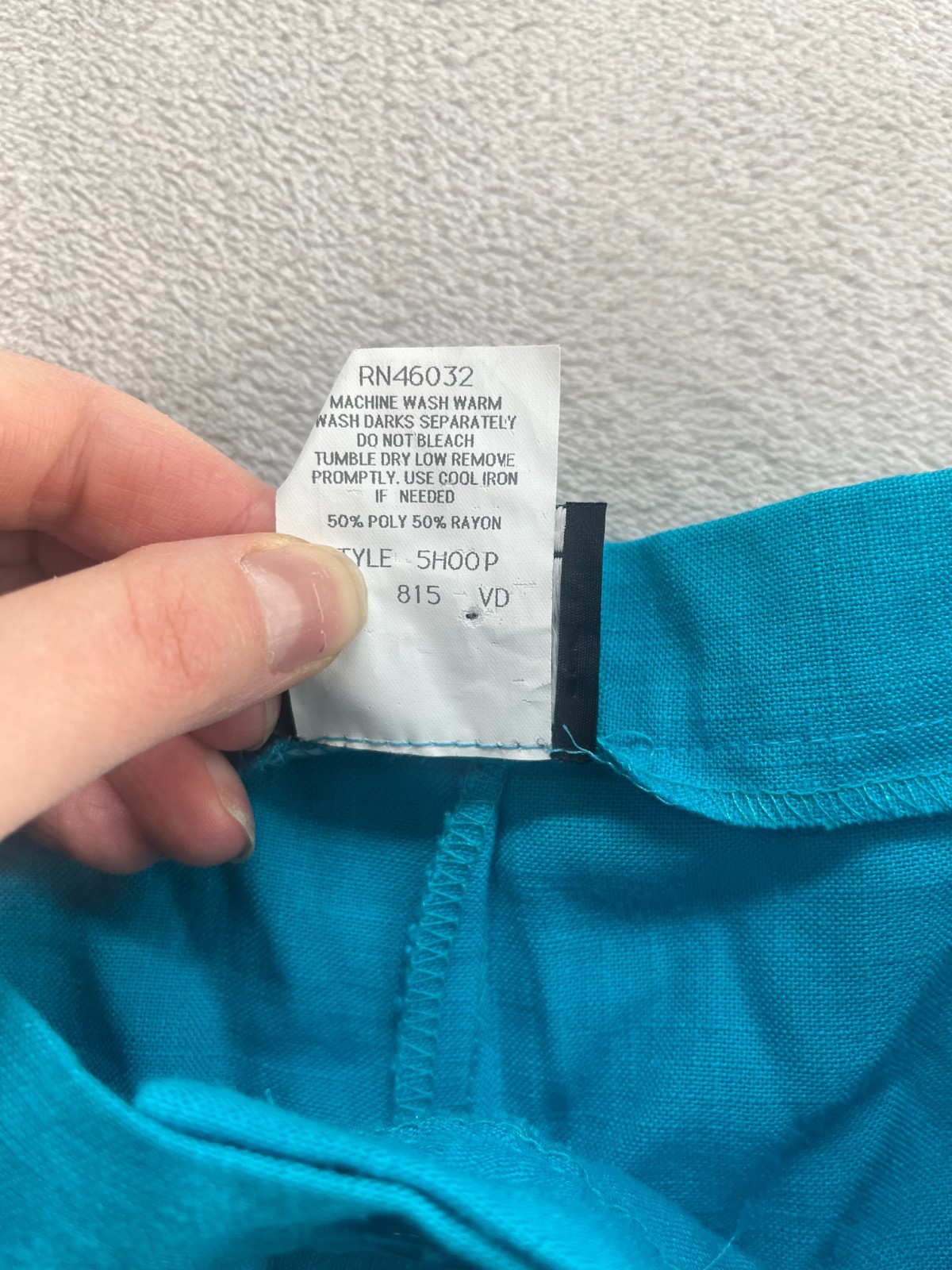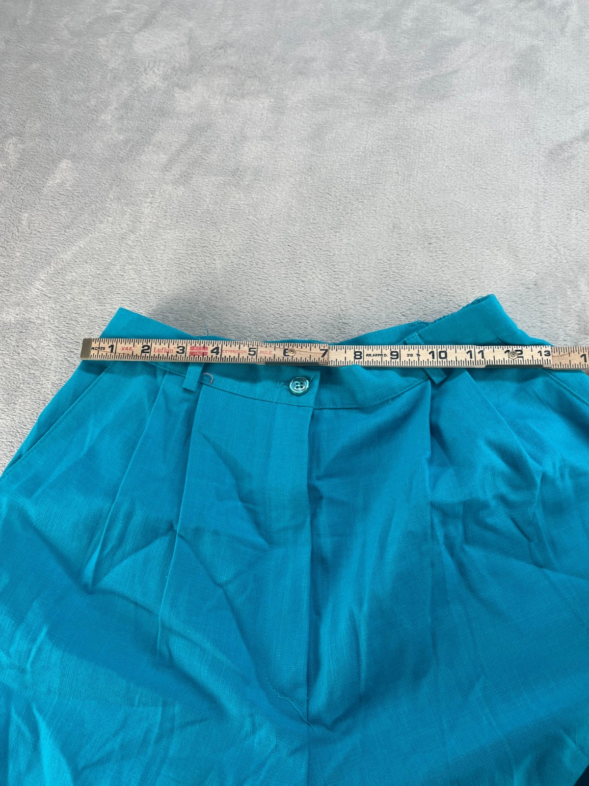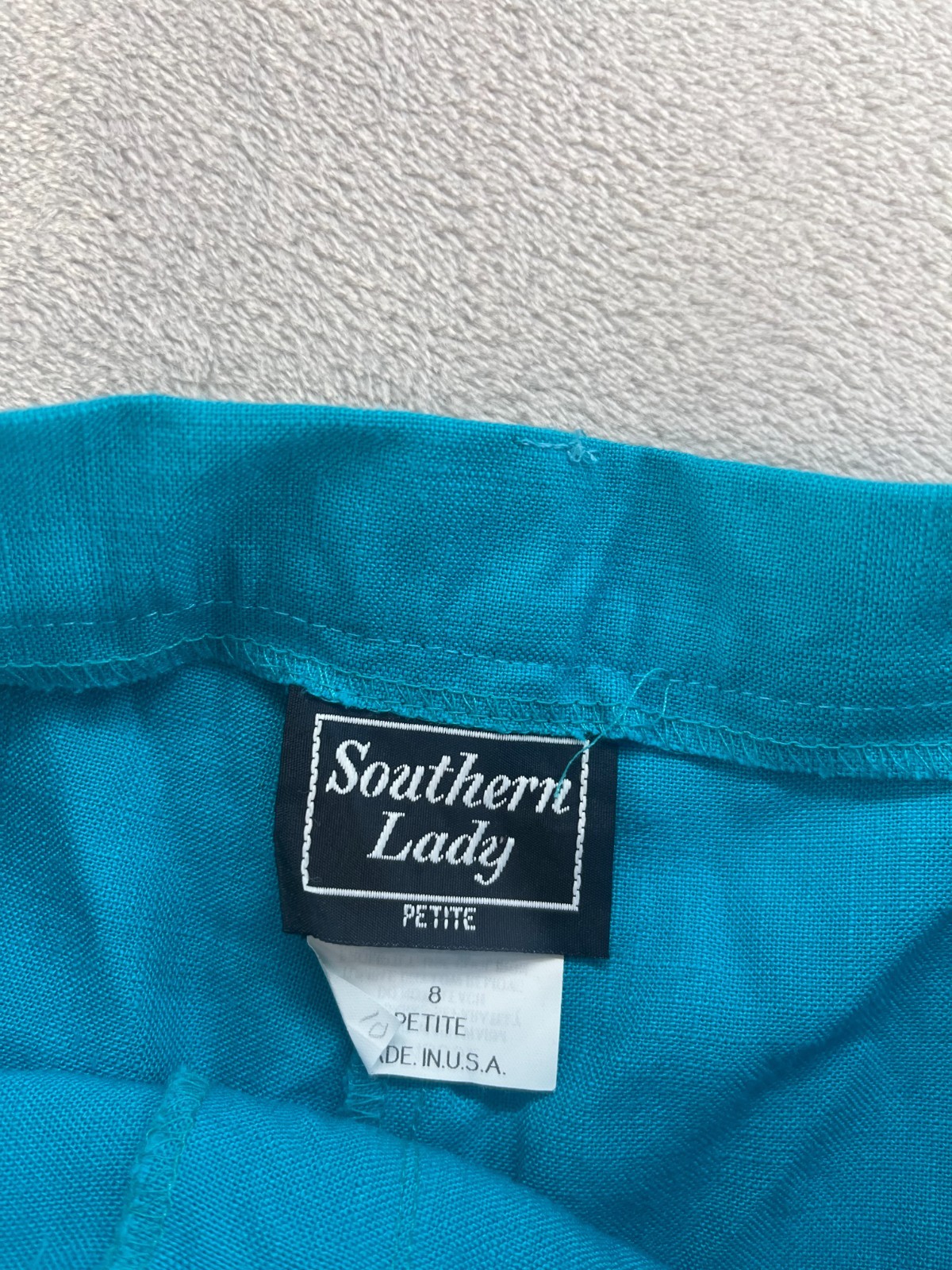 These Southern Lady high rise pants for women in size 8 petite are a stylish addition to your wardrobe. The pleated design and vintage look make them perfect for casual occasions or traveling during the summer, fall, or spring seasons. The elastic waist ensures comfort and ease of movement, while the ankle length and straight leg style add a flattering touch. These pants also feature pockets for added functionality and are made from a comfortable blend of polyester and cotton/polyester materials. The solid blue color and machine washable care instructions make these pants convenient and versatile for everyday wear.