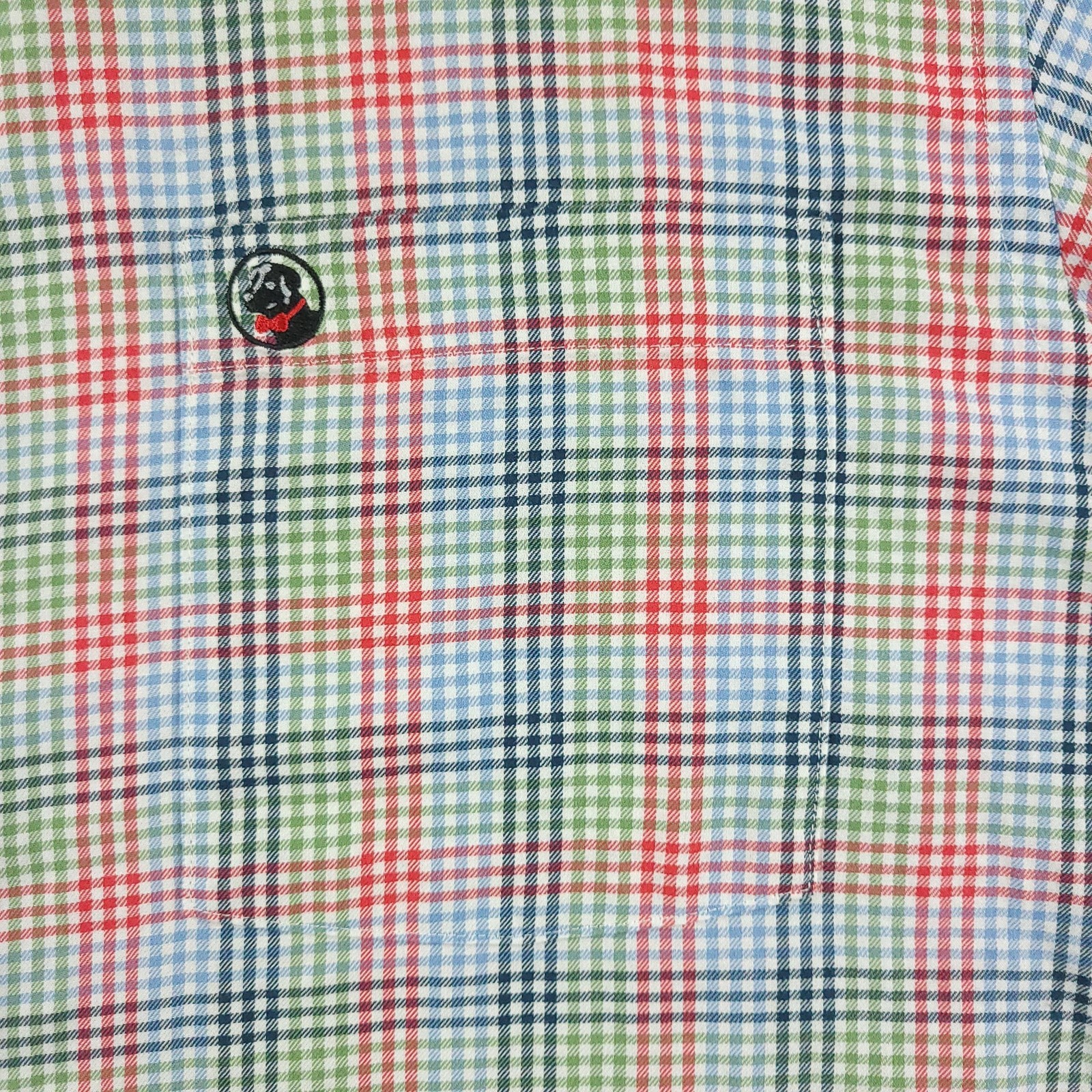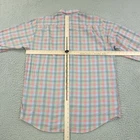 Brand: Southern Proper Style: Mens long sleeve button-up shirt with button-down collar in a multicolor plaid pattern. Color: Multicolor with shades of red, green, blue, and white. Size on tag: Large (L). Material: Shell 100% cotton; lightweight woven fabric. Details: Full button front closure, button cuffs, left chest embroidered Southern Proper dog logo, back yoke with pleats, shirttail hem, collared neckline. Manufacturing info: RN# 122975; made in China. Washed and dried with Fragrance Free Detergent & Dryer Sheets. Measurements are included in the photos, compare measurements with your item to ensure proper fit. (Measurements are done with the item lying flat). I ship next business day and all items include tracking. Items are added daily to my store Visit My Store Buy More & Save! Combined shipping for US customers - $1.99 for each additional item (Add items to shopping cart and discounts will automatically calculate during checkout)