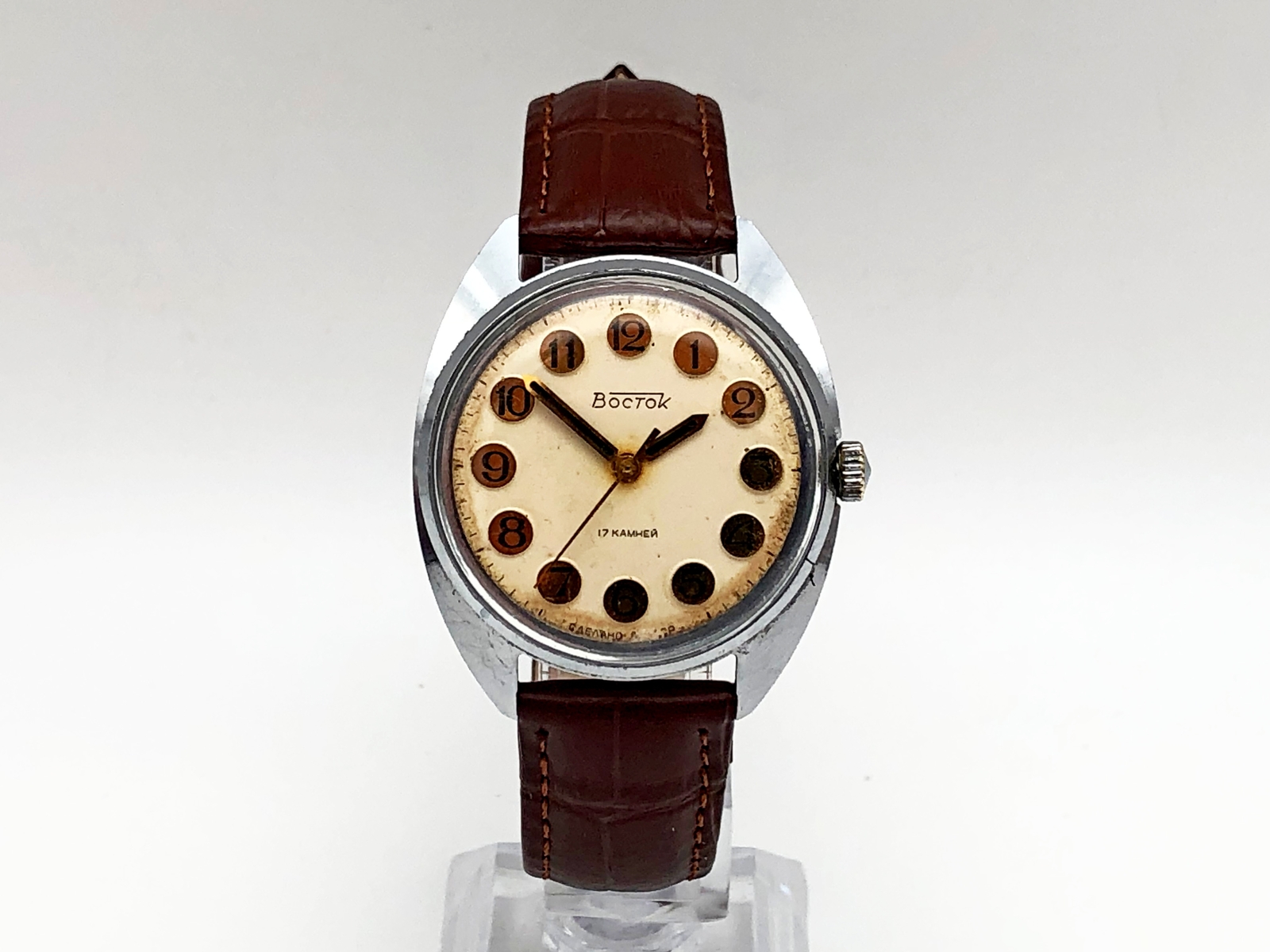 This Soviet-era WOSTOK 2409 is a fantastic piece of history with smooth operation thanks to its professional servicing. The 17-jewel movement keeps great time, and the vintage design has real character. It’s sturdy, reliable, and perfect for collectors or as a unique gift. The seller ships fast and offers combined discounts—great value for a serviced USSR timepiece!