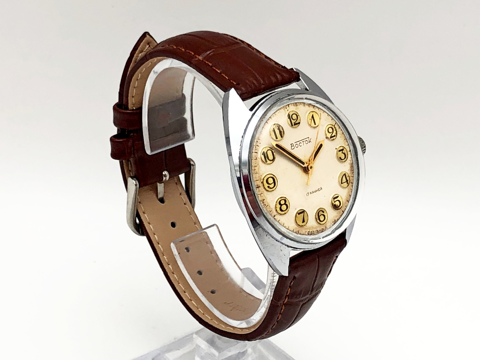 WOSTOK 2409 Soviet Vintage Wristwatch Vostok 17 Jewels USSR Serviced Watch Produced by the Chistopol Watch Factory The watch is serviced by professional watchmaker. The service included complete disassembly, cleaning and subsequent lubrication of the mechanism. Could be a great gift for someone you love or can be added to your collection. Contact me if any questions. I do offer combine shipping discount if you buy 2 items or more. I make shipments the next business day after the purchase. Please watch the photos carefully as they are important part of description. Thanks for your interest. Have a look at some other lots at our store. 💛💙