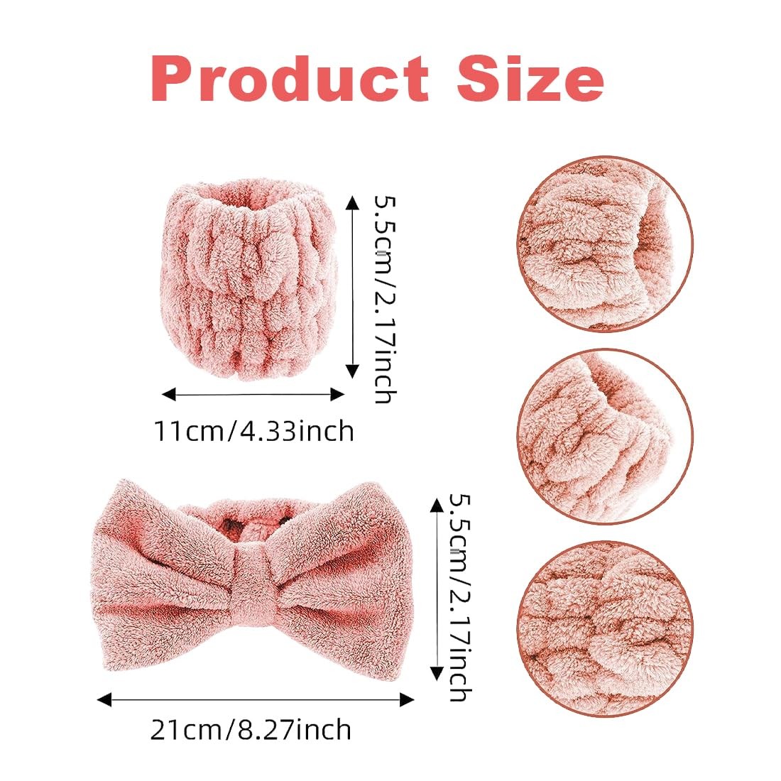 Product description Spa headband and wrist set: you will receive 1 face wash strap and 2 bracelets, suitable for facial cleansing, showering or make-up, helps you block unwanted hair and gives you a good wearing experience. Suitable for most people: the coral fleece is soft to the touch, lightweight and suitable for most people, washed by hand or machine, no fear of deformation. Strong water absorption capacity: the headbands for women's hair are made of high-quality coral fleece, the spa headband absorbs water and dries quickly, is soft and fluffy, has good air permeability, is comfortable to wear and can be washed repeatedly without deforming. Simple design: the design of the headband is simple and practical, the classic plain colour is suitable for people who like simple styles, and the headband is elastic and does not fall off. The makeup headband is very convenient to use. When washing your face or caring for your hair, brush your hair away from the forehead to prevent liquids from running down your arms. Wide range of applications: the face washing headband is ideal for sports, yoga, washing your face and showering, the headband can effectively hold to help you keep your hair dry and prevent liquid from running down your arms when you wash your face. Skin care headbands can also be used under makeup to keep hair away from the face.