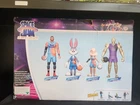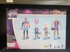 **Box has some damage as shown in pics.** The product is a special edition set of 4 action figures from the movie Space Jam "A New Legacy", featuring characters like Bugs Bunny and LeBron James. Produced by Moose Enterprise, these original figures are a must-have for fans of the Space Jam franchise. The set includes a mixed lot of items and is sure to delight collectors and enthusiasts alike with its unique gold Chronos design.
