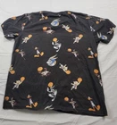 Space Jam Shirt Mens Medium Black Basketball Warner Bros Looney Tunes Bugs Bunny Tee Condition: Good used condition – moderate overall fading and gentle wear, some slight pilling and minor wash wear visible (see detailed photos for close-ups of fabric and graphics). No holes or major stains. All-over print featuring Bugs Bunny, Daffy Duck, Wile E. Coyote, Lola Bunny, and Space Jam basketball graphics Material: 60% cotton, 40% polyester Tag size: Medium (Mens). Approximate flat measurements: pit to pit ~20 in, back length ~27 in Official Warner Bros. Entertainment Space Jam licensed apparel Made in China Classic crewneck short sleeve tee style Great for fans of Looney Tunes, Space Jam, or retro 90s/2000s cartoon character shirts Packaged for safe storage
