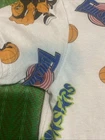 The Space Jam Toon Squad Monstars Cartoon White Short Sleeve Shirt is a vintage-inspired t-shirt featuring iconic Looney Tunes characters like Bugs Bunny and Daffy Duck. Made of comfortable cotton material, this shirt in size S is perfect for fans of retro cartoons and sports. The graphic print design, crew neck, and regular fit make it a versatile piece suitable for all seasons, showcasing a fun and colorful theme inspired by the 90s era. The shirt has a logo accent, reflecting a blend of nostalgia and hipster style in its overall design.