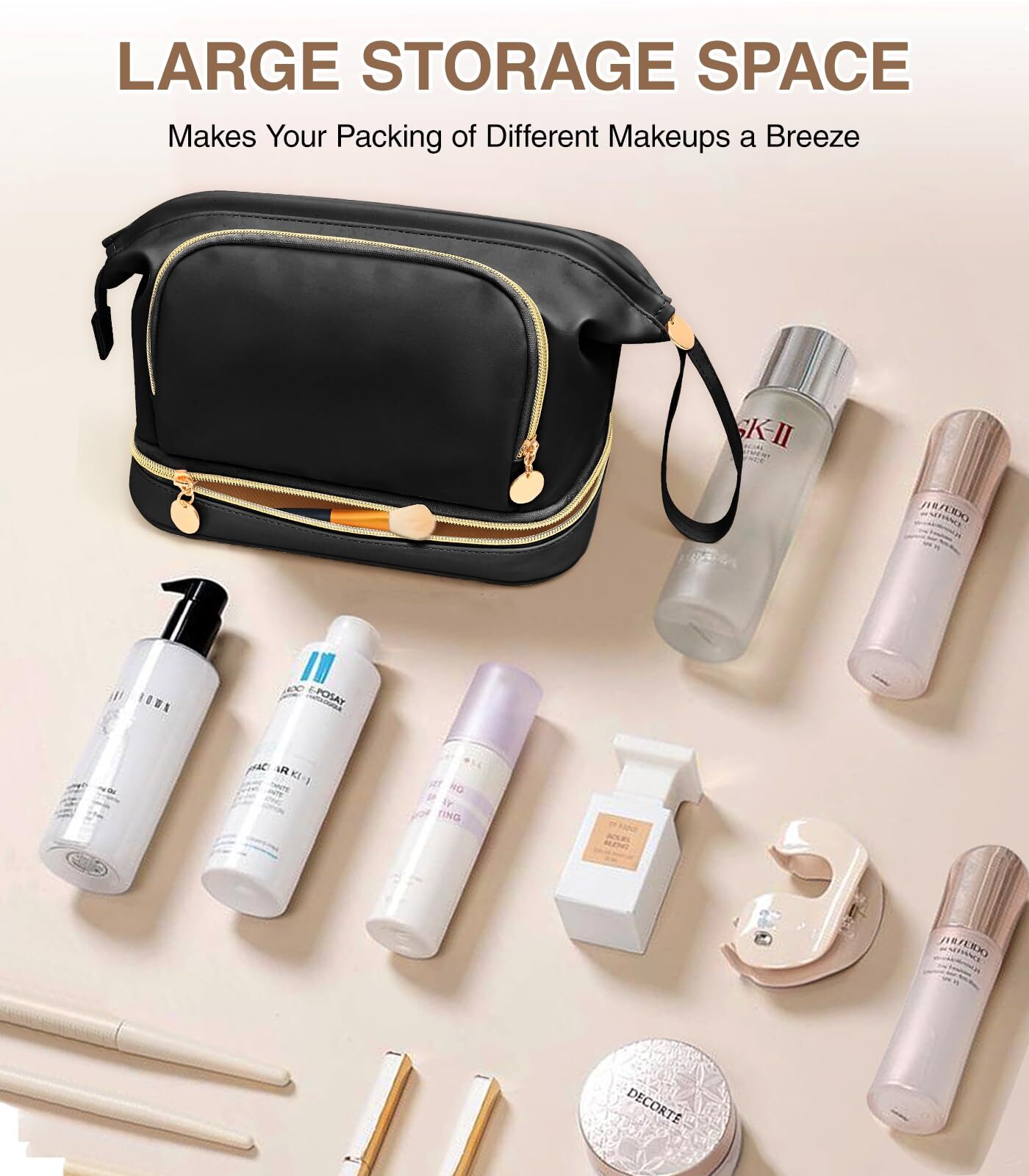 Hairao Large Makeup Bag, Double Layer Makeup Bag Organizer, Toiletry Bag For Women, Cosmetic Travel Bag, Leather Makeup Bag, Portable Toiletry Bag, Waterproof Roomy Bag For Women And Girls, Q-Black 【7.6 L Extra Larger Makeup Bag】For more storage needs, Hairao cosmetic bag increases 30% larger space - 7.6 L EXTRA large capacity for women and girls (Size is 10.4*6.1*7.7 inches). And the anti-slip plaid outer pattern is different from the other makeup bags, look more elegant and fashionable. It is also a multifunctional bag - can be used as make up bag, travel bag, skincare bag, toiletry bag, bathroom bag, jewelry bag and handbag ect. 【Double Layer Toiletry Bag】The make up bag is divided into upper and lower storage areas. Larger opening design of upper layer main areas with built-in iron bars secures the toiletry bag very well, making it easy to quickly access the cosmetics and tools you need. The lower layer has 5 separate makeup brush areas and extra stretch storage area. And the clear brush cover can keep your brush dry and clean, preventing powder flying into air. The makeup bag can make them organiazed enough 【Thickened Leather & Bottom Sponge】The toiletry bag is made of superior waterproof and thickened PU leather. It is easy to clean and can effectively prevent the internal items from moisture. The bottom cushioning sponge protect internal cosmetics better, and sturdy Zipper silkier to use and more delicate to the touch that supply variety of colors for women and girls to choose from 【Portable Travel Make Up Organizer】Multifunctional travel makeup bag with carry handle and brush holder, it allows for versatile uses, such as be a cosmetic travel bag, toiletry bag, skin care bag, travel bag, or daily storage bag. It helps to effectively organize various necessities of makeup 【Present For Women And Girls】The stylish and practical makeup bag organizer makes the ideal present for daily use, or for special festivals SHIPPING Domestic Buyers - We have confidence in our products, but if you are not fully satisfied please contact us within 30 days of purchase and you will get full refund. - We ship within 3 business days of payment, usually sooner - We offer FREE shipping on all orders! - We only ship to the lower 48 states, no APO/FPO addresses or PO Boxes allowed International buyers – please note: Import duties, taxes, and charges aren't included in the item price or postage cost. These charges are the buyer's responsibility. - Please check with your country's customs office to determine what these additional costs will be prior to bidding or buying. * Order Cancellation Policy ** You can return a product for up to 30 days from the date you purchased it. 1. The seller reserves the right to cancel the special case only due to eBay cancellation fee. 2. The decision of seller is the final. 3. The seller will respond to the cancellation request within 2 business days. Please wait for the result of cancellation. 4. In case the cancellation is not completed by some reasons, the buyer can follow the options below to get the refund. 4.1 The buyer can reject the item when it arrives. 4.2 The buyer can send the item back to the seller within 30 days If the buyer receives item (USA Shipment ONLY). The seller will provide the FREE return label to the buyer when the buyer opens " Return Item" case on eBay by using the reason as "Change my mind" ONLY. 5. When buyer has placed the order. The order will be processed and completed by automatic warehouse system within 5 minutes. In case that buyer sends the cancellation request after 5 minutes of placing the order, the request will be rejected. **Sending direct message to cancel the order is not allowed for every case.* Return Policy For the return case - If buyer would like to return the items for refund or replacement, please CONTACT SELLER to receive the free return label from seller. The refund or replacement will be processed with the tracking number of return label which is provided by seller only. The other ways of return which are not approved by seller will not be processed for the refund or replacement.