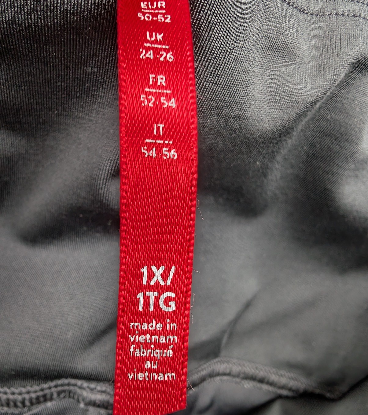 Brand: Spanx Department: Women Size: 1X Color: Black Style: Leggings Type: Pants Material: Nylon/Spandex Blend with Polyurethane Coating Rise: High Rise Features: Shaping, Stretch, Faux Leather Finish Occasion: Casual, Party, Night Out, Athleisure Pattern: Solid Fit: Slim Country/Region of Manufacture: Vietnam Condition: Pre-owned – good condition with normal wear