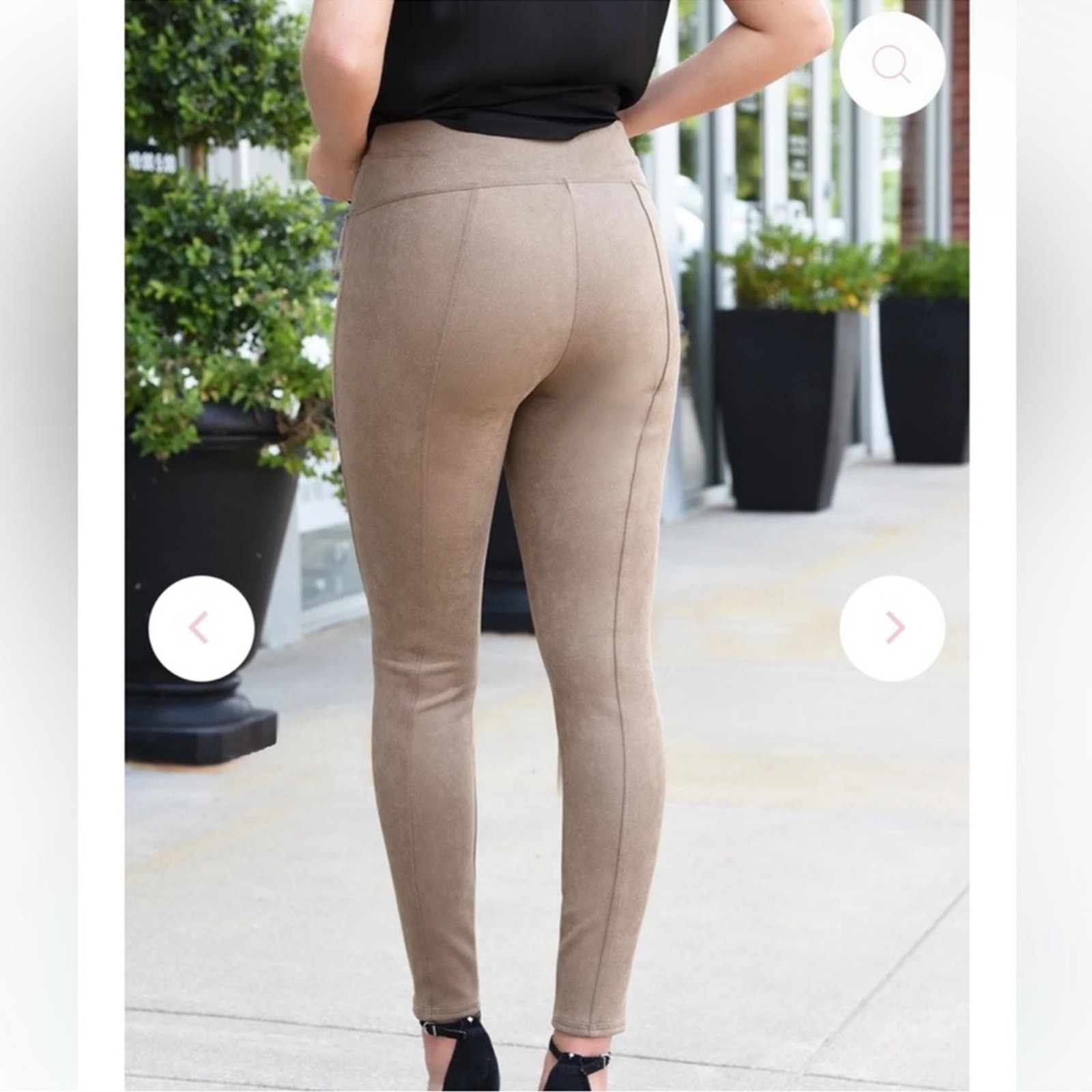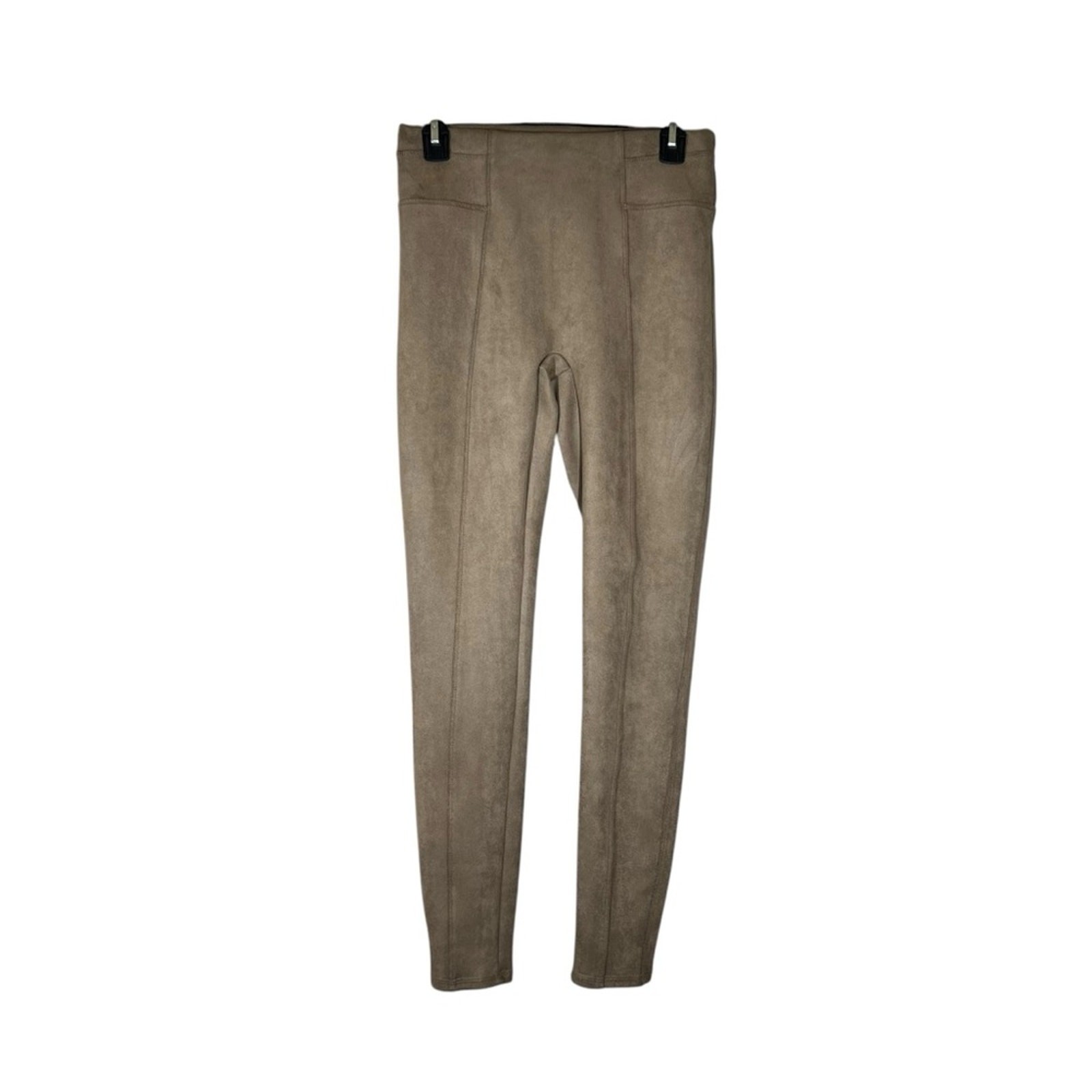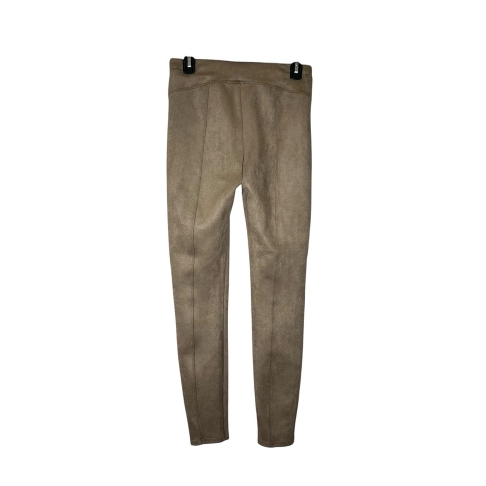 Spanx Faux Leather Legging Size Small Color: Tan Hidden core shaping technology Shimmy it on, no button or zipper for a smooth look Luxurious stretch Soft Strategically placed seams flatter your legs No rips holes or stains Approximate measurements laying flat Waist 13.5” Rise 11” Inseam 26”