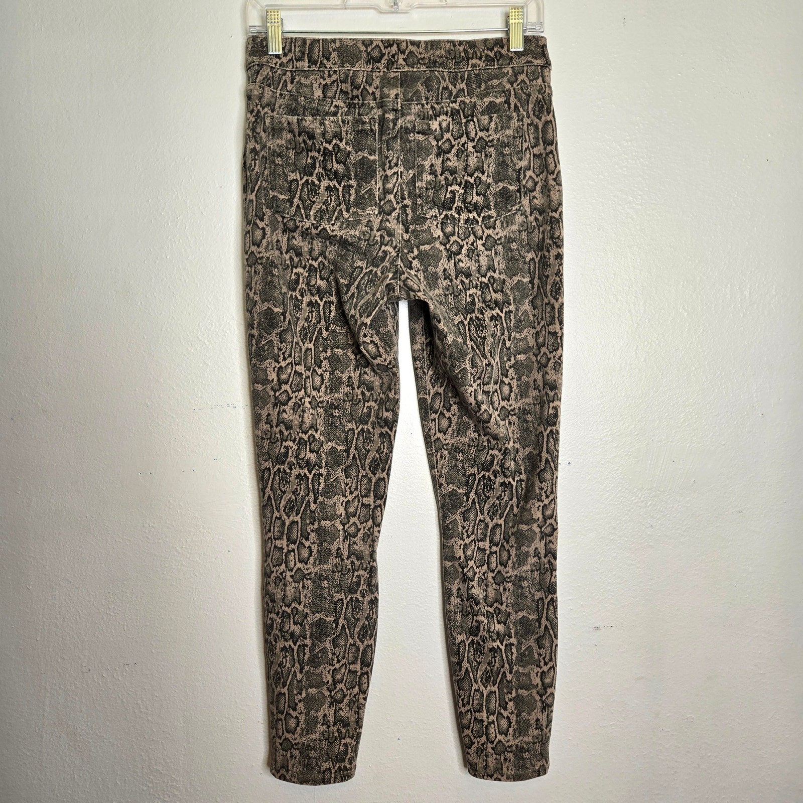 Excellent pre-owned condition, no flaws. Taupe, black Faux fly 2 back pockets Fabric content / care instructions in photos Approximate measurements: 14" Across waist 15.5" Hip to hip 10.5" Rise 26" Inseam Style tags: animal, reptile, snake, neutral, shaping, slimming, edgy, going out Ships next business day. Please message with any questions! 217-240731 JPSH2