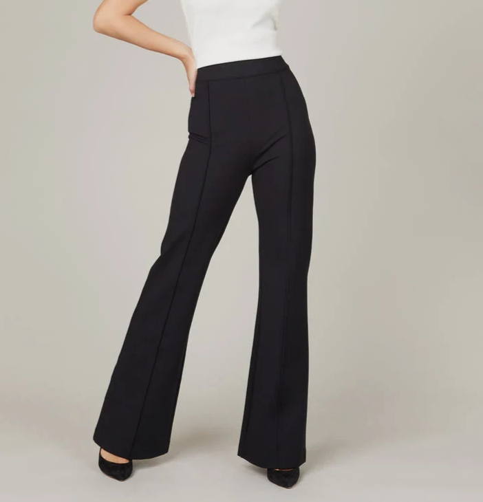 Welcome to Aspen Crossing, offering many styles that reflect the rugged beauty of our American West. Whether your style is Western Bohemian or Quiet Luxury, you’ve come to the right place! Brand: Spanx by Sara Blakely Style: Womens pull-on dress pants with front seam detail and subtle bootcut flare leg. Color: Black. Size on tag: M/M; additional size equivalents on tag EUR 38-40, UK 12-14, FR 40-42, IT 42-44, KR 66. Materials (body): 68% rayon, 28% nylon, 4% elastane; lining: 80% polyester, 20% elastane. Style/Model code: 20252R (additional tag numbers: 24745, 09152110; RN 112121). Details: Wide smoothing waistband, faux fly front, vertical front seams, rear welt pockets, stretchy shaping fabric, bootcut/flare leg opening, unlined except for internal shaping panel. Washing can change the size of a garment. It is best to compare the measurements in the photos with a garment that fits you comfortably. Please note: While every effort has been made to reproduce actual colors in photos, variations may occur on your screen.