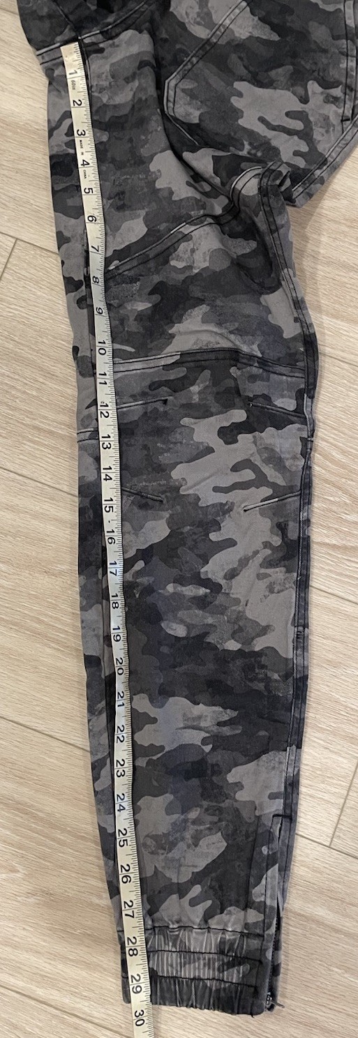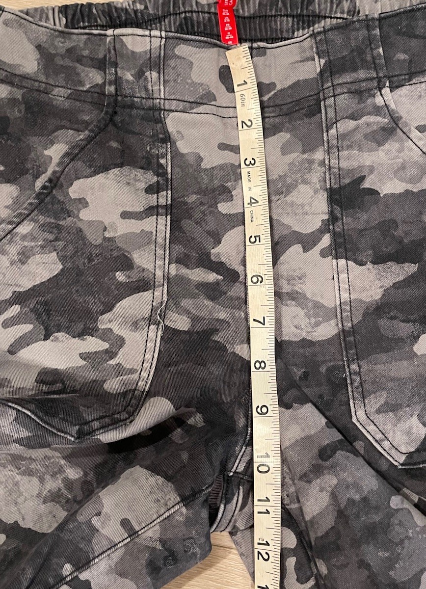 The Spanx Women's Size Large S Stretch Twill Cargo Joggers in Gray Camo are versatile pants perfect for casual or business occasions. These pull-on pants feature a high-rise flat front design with a tapered leg style and a 29-inch inseam. Made with stretch twill fabric, these cargo joggers offer a comfortable fit with plenty of pockets for functionality. The camouflage pattern adds a stylish touch to this wardrobe staple from the trusted brand Spanx.