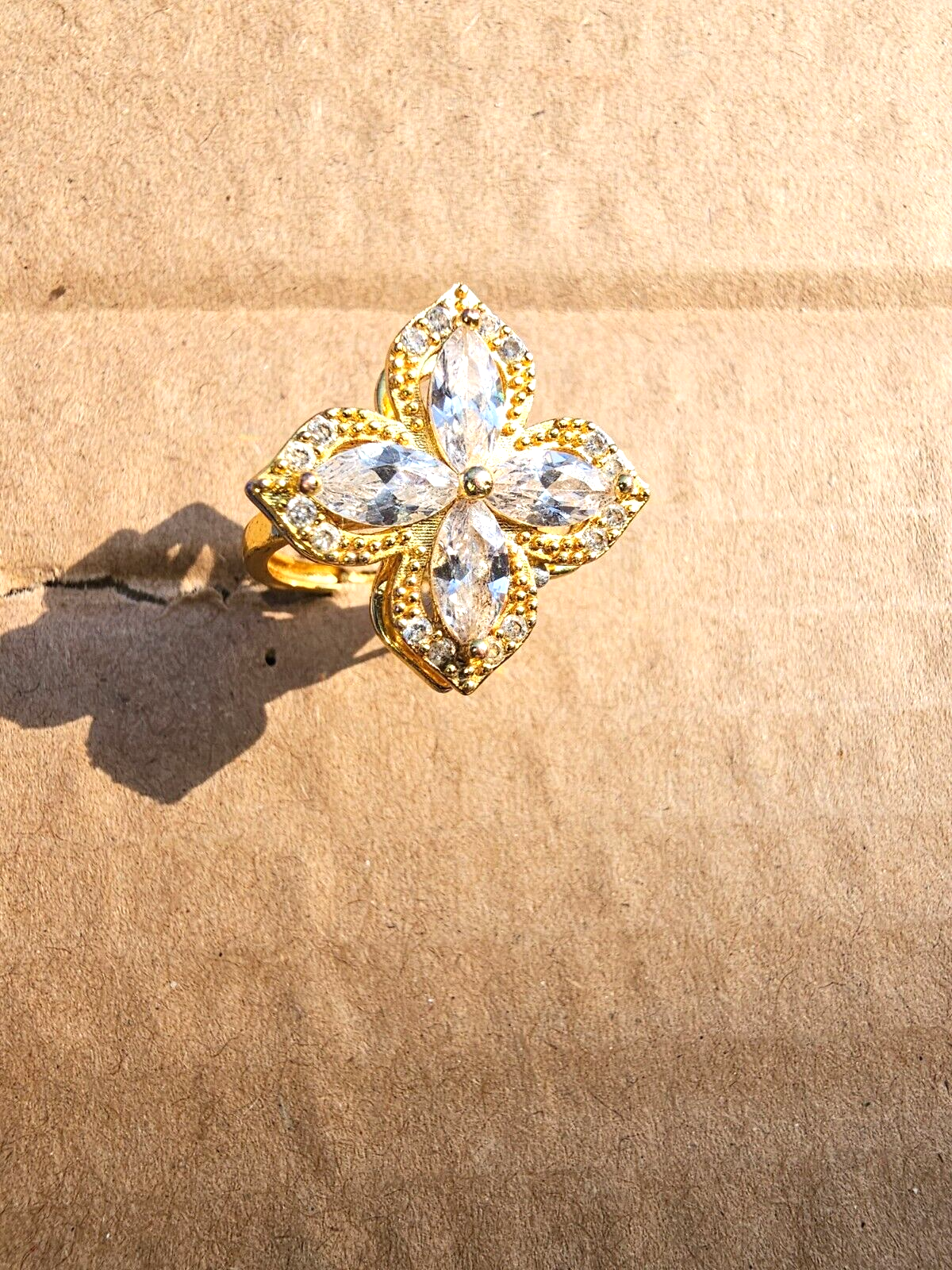 This product is an Italian gold sunflower ring, designed as a beautiful accessory for women. The ring features a sunflower motif, adding a touch of elegance and sophistication to any outfit. Its gold color enhances the overall aesthetic, making it a stylish piece that can complement a variety of styles and occasions. Perfect for adding a touch of glamour to any woman's look, this sunflower ring is sure to be a standout accessory in any jewelry collection.