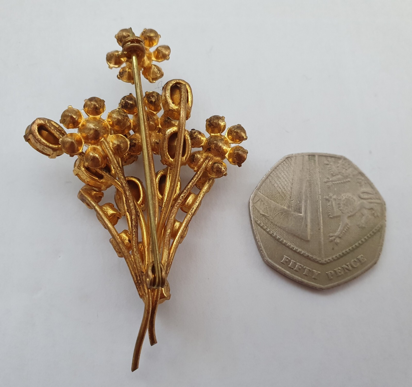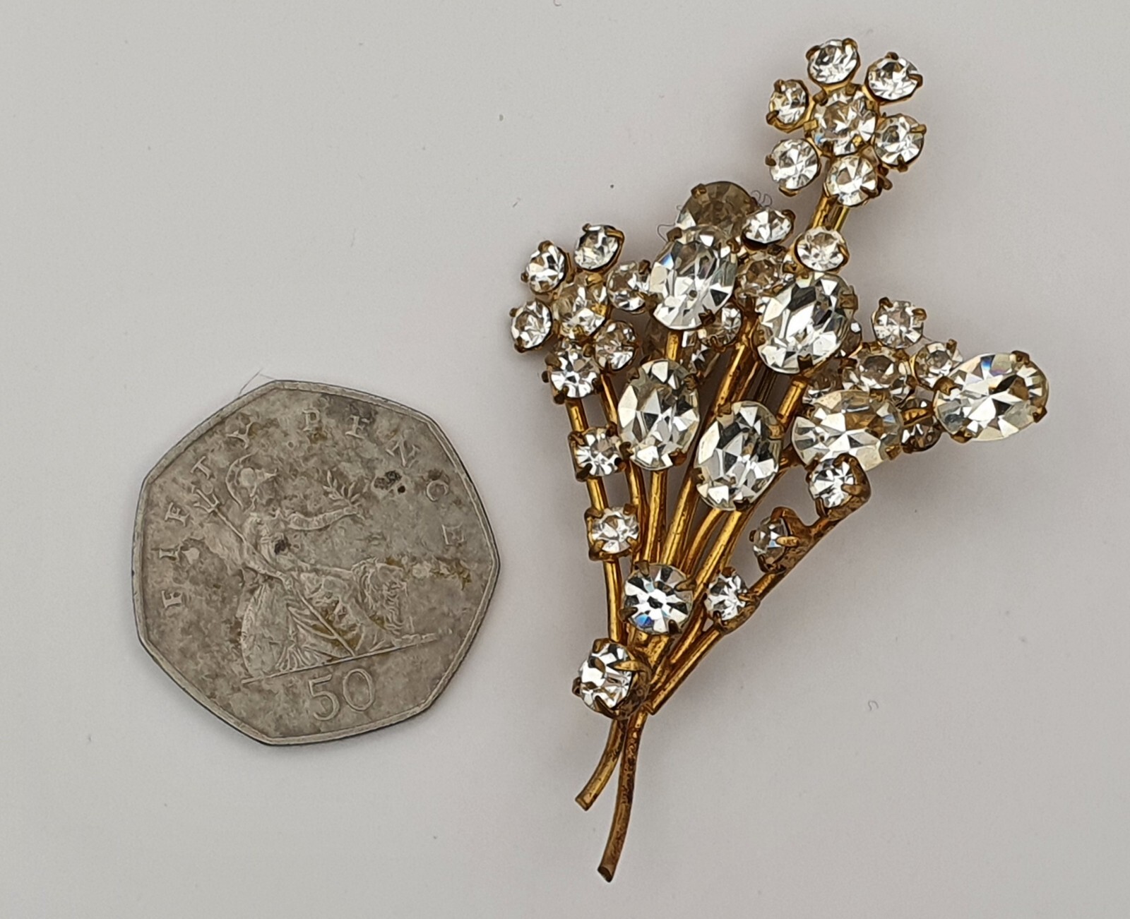 This is a Lovely Sparkly Clear Oval Round Rhinestone 3D Floral Spray Bouquet Gold Tone Brooch Pin, preowned with wear consistent with its age, please see photographs for condition. Please be aware that different monitors and screens show colours differently. Approximate size: 6.5 cm X 4.5 cm BT-2200 Please not that the Brooch Pin has been checked for Defects prior to photographing and I do not give part refunds, if you are unhappy with the Brooch Pin upon delivery please contact me via eBay. Postage & Packaging: I always get proof of postage, in the unlikely event that your item dose not arrive, I will provide the Post Office or any other courier used with the necessary information to trace the item or make a claim for loss.